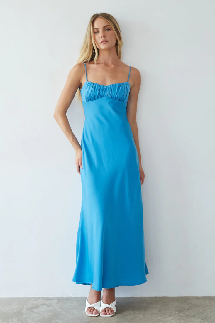 Light up the room in the Andie Open Back Satin Maxi Dress! This beautiful dress is made of a satin material and features a ruched bust, adjustable spaghetti straps, and an open back with a twist strap detail. Accessorize to finish off the look!