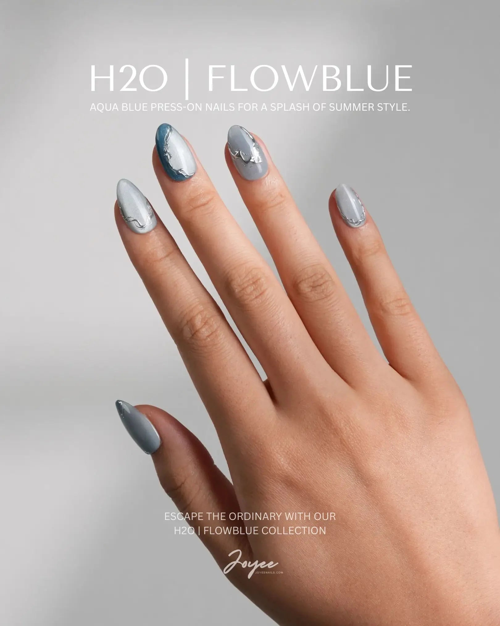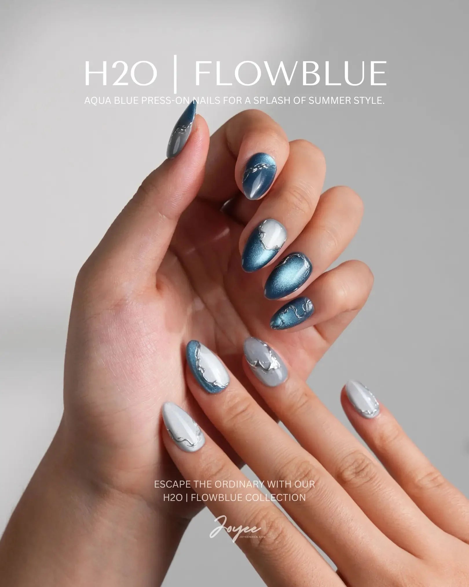Wander along Lake Louise in Banff National Park, where the Banff Blue waters shift from deep turquoise to icy azure beneath the Canadian Rockies. This design, with flowing silver lines, captures the mystic beauty of this glacial lake, bringing its serene depths to your nails.