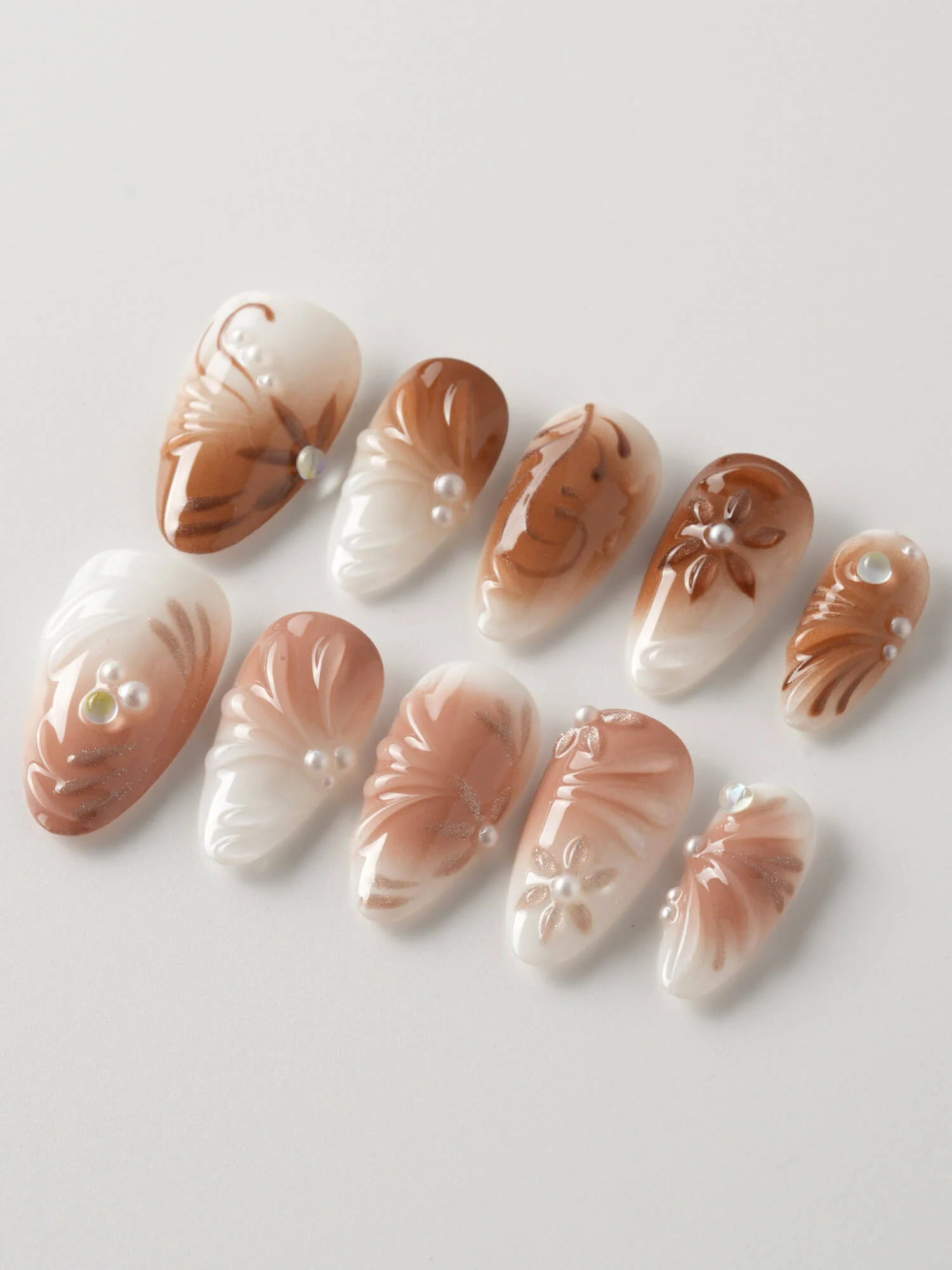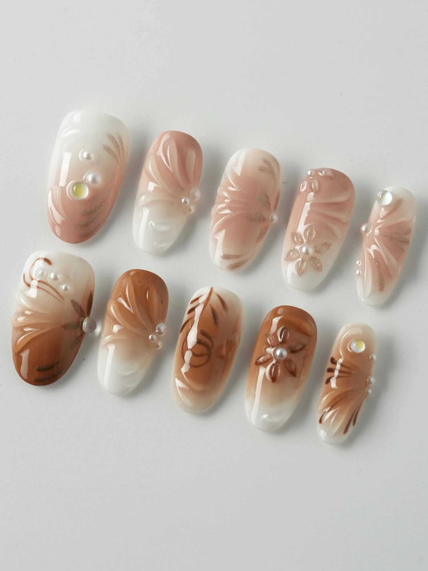 Joyeenails offers reusable handmade press-on nails with customizable options for size, shape, and length. Each beautiful set is carefully crafted by our nail artists after your order is placed, bringing you high-quality nail art. We also regularly release our original themed collections—follow Joyeenails for more nail inspo!