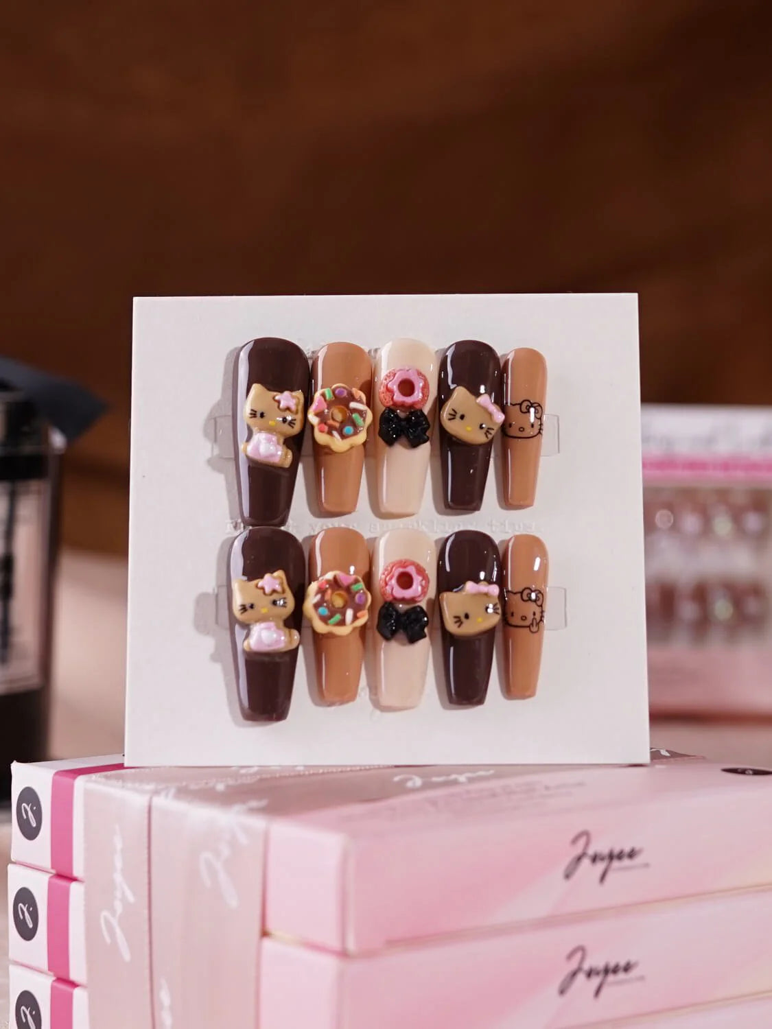 Joyeenails offers reusable handmade press-on nails with customizable options for size, shape, and length. Each beautiful set is carefully crafted by our nail artists after your order is placed, bringing you high-quality nail art. We also regularly release our original themed collections—follow Joyeenails for more nail inspo!