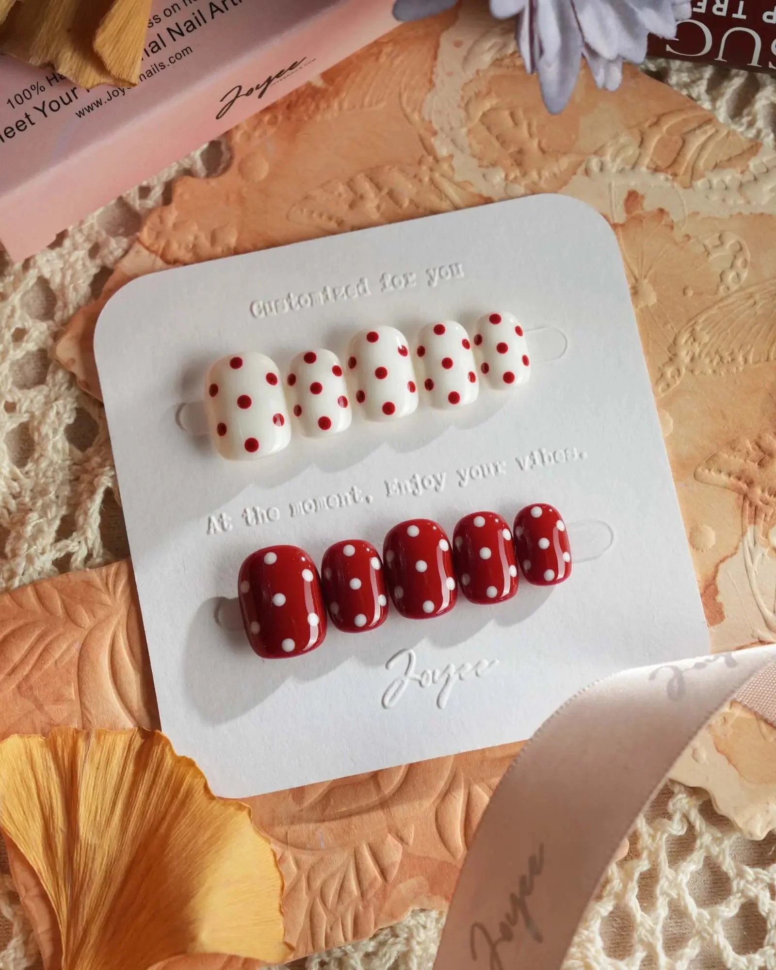 Red and white never miss. This press-on nail duo mixes creamy white with vivid cherry red, both covered in playful polka dots. Clean, bold, and ready for any mood.