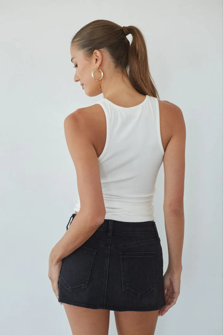 Elevate your casual look with the Dasha Micro Mini Denim Skort. This must-have skirt features a micro-mini length, built-in shorts, and distressed denim wash.