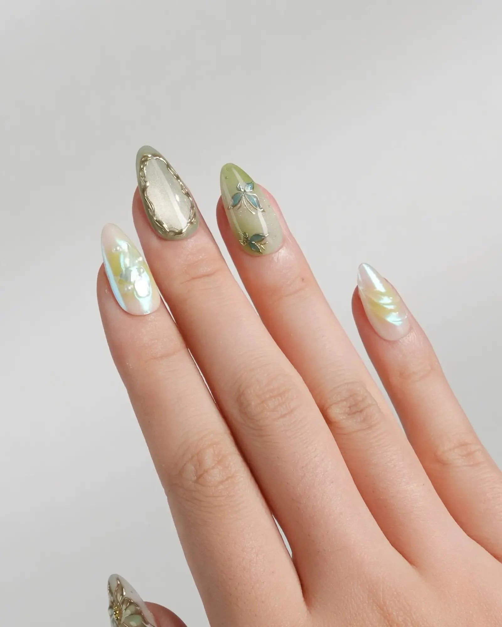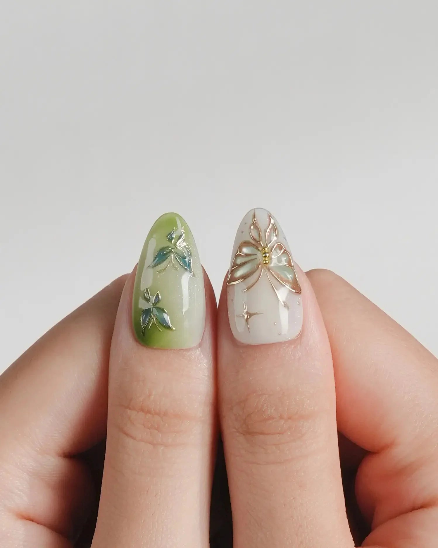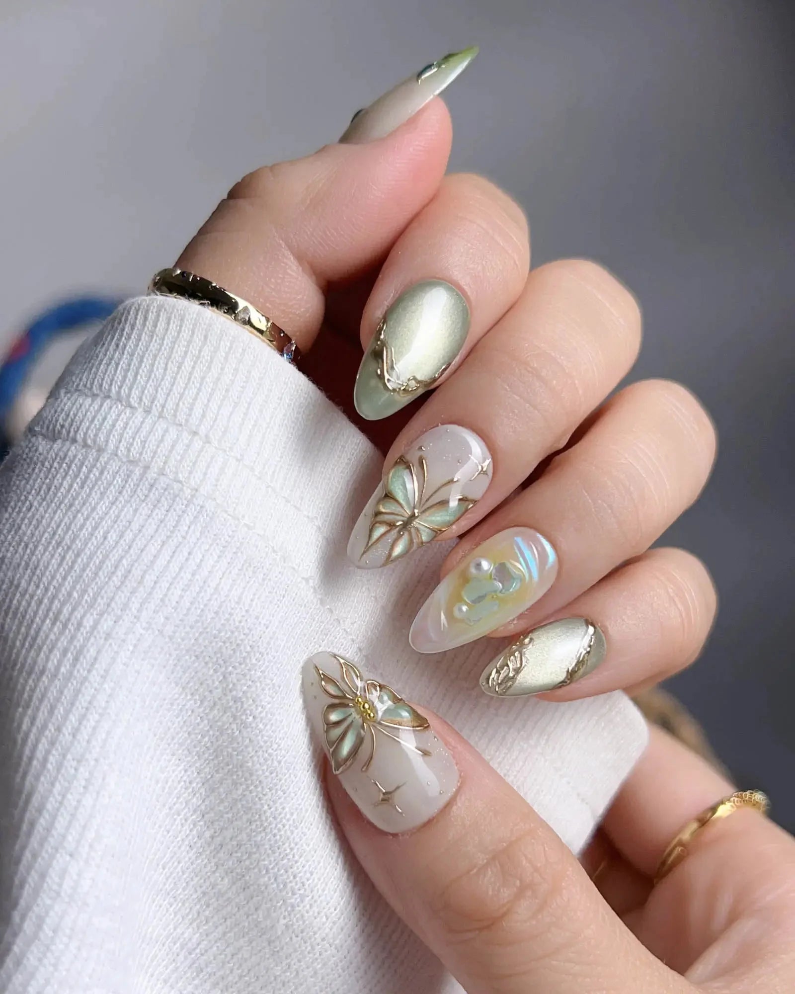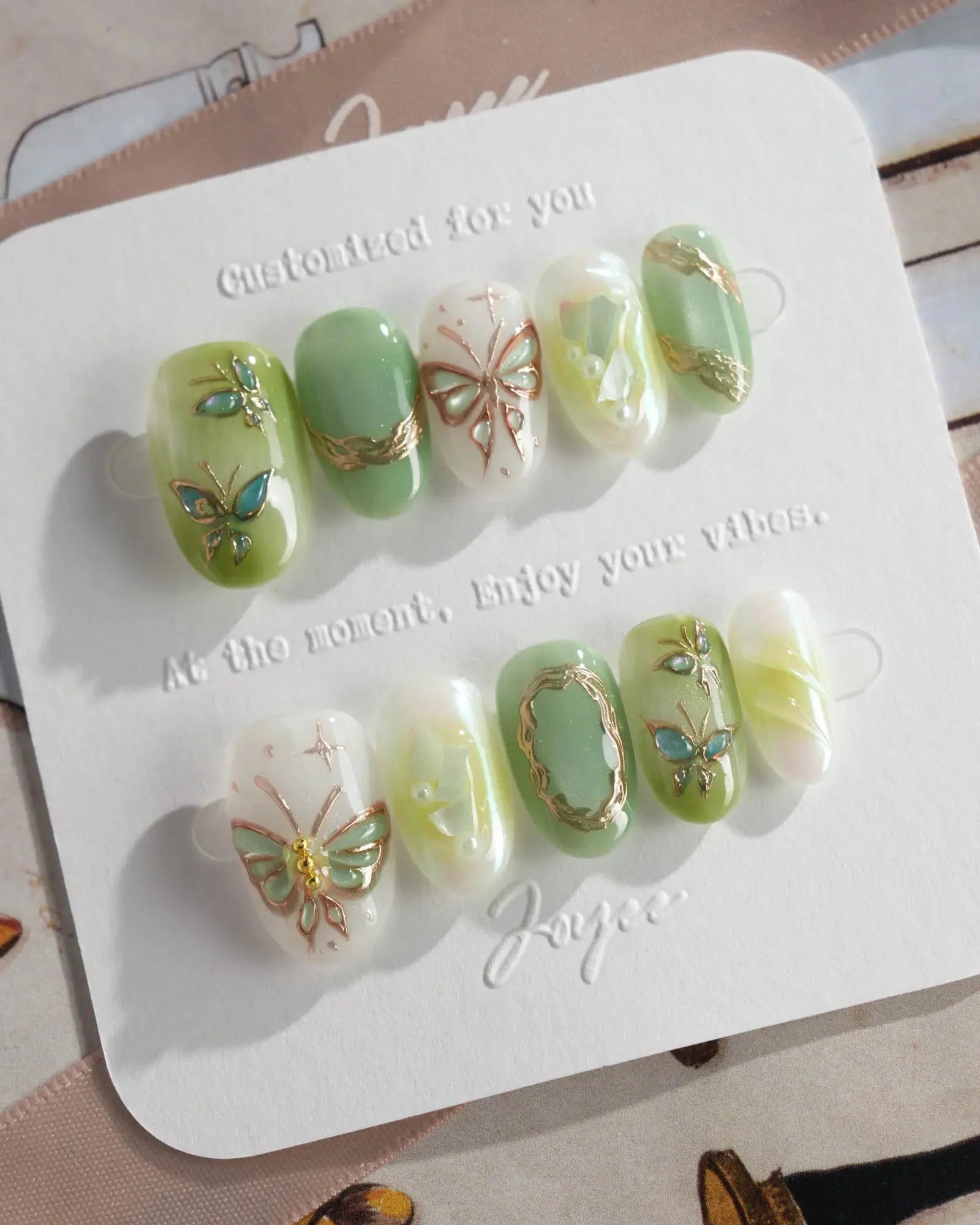 Originally made just for myself, Dreamland got so many compliments we had to release it. Green cat-eye gradients shift like forest shadows, while chrome lines add dimension. The butterfly? A two-toned 3D masterpiece—built with layered cat-eye wings that glow and flutter with light. A little magical, a lot unforgettable.