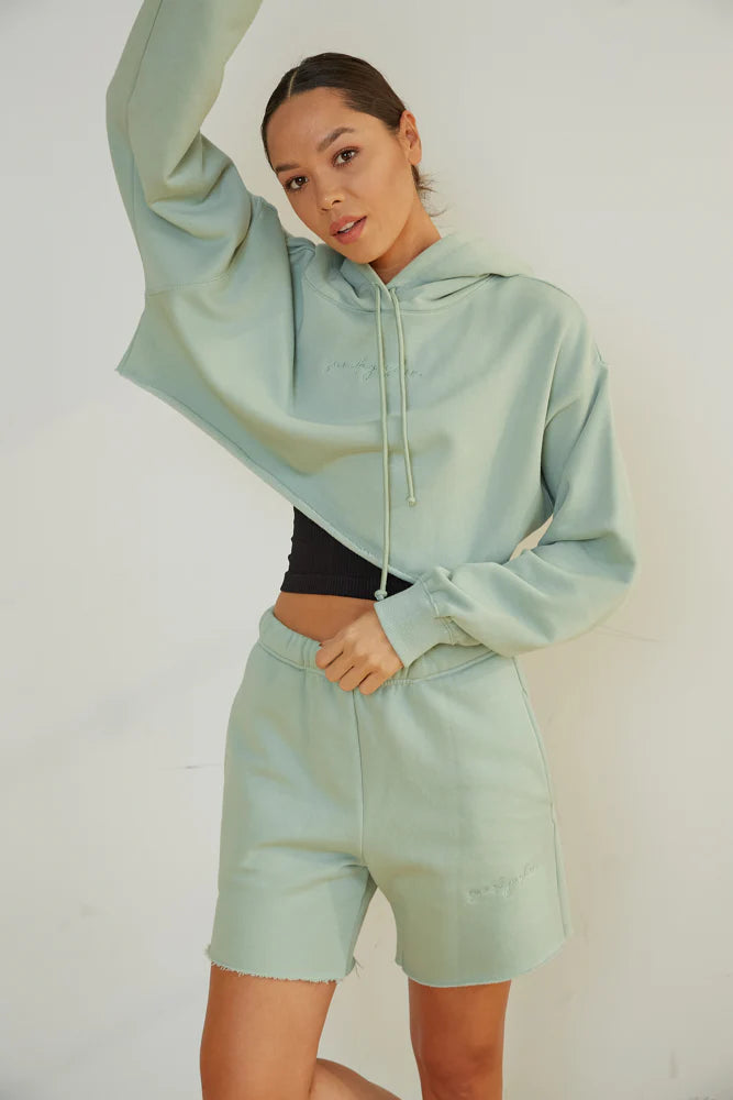 The wait is over. Your perfect fall sweatshirt just landed! The Girlfriend Crop Hoodie by Sunday Skin features a boxy cropped silhouette, slouchy sleeves, and a drawstring tie. Topped off with a beautiful "Sunday Skin" monochromatic embroidered logo. Available in sage. Style with our Sunday Skin '90s Baggy Sweatpants In Sage to make this look a set!