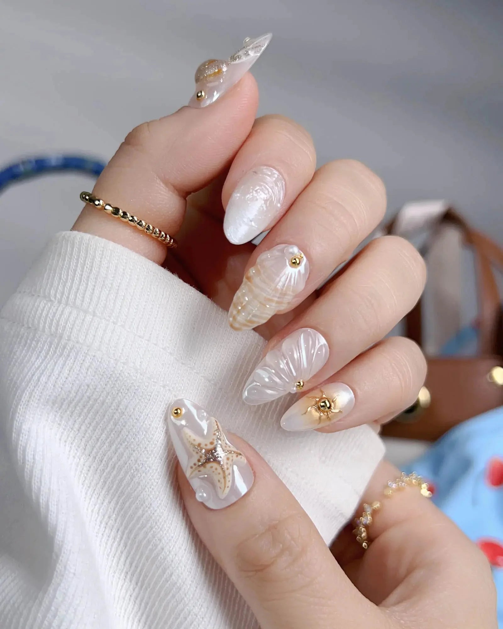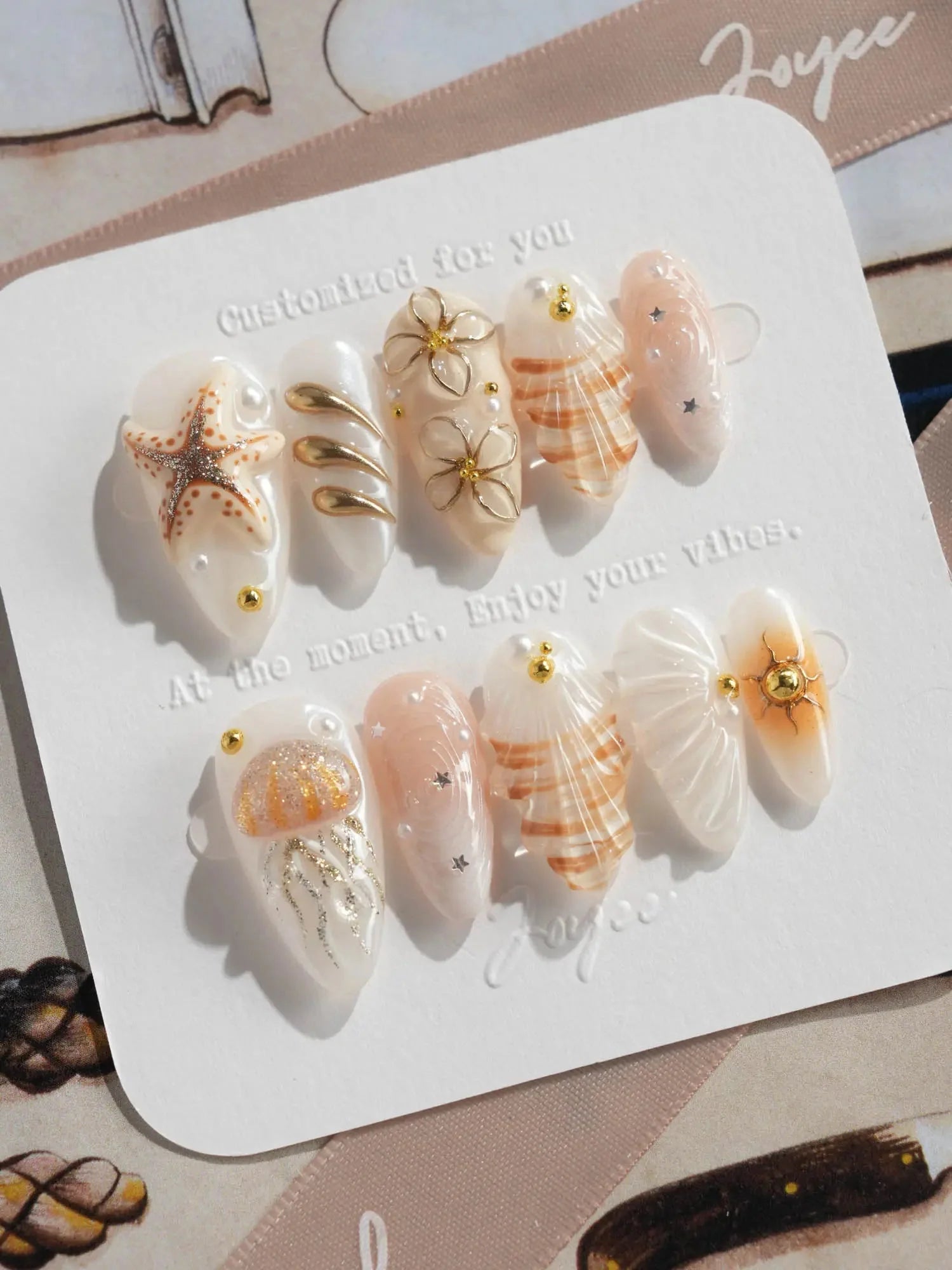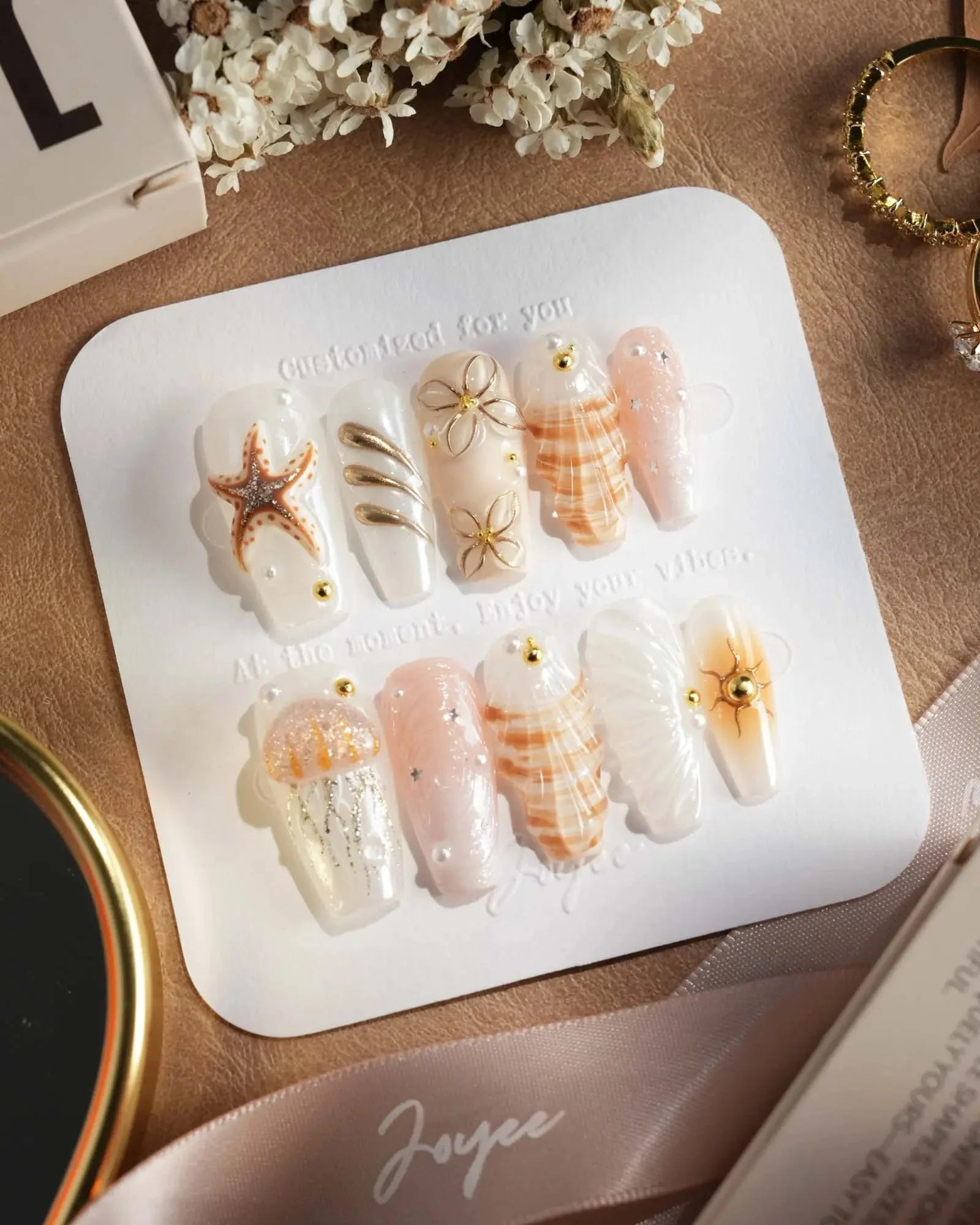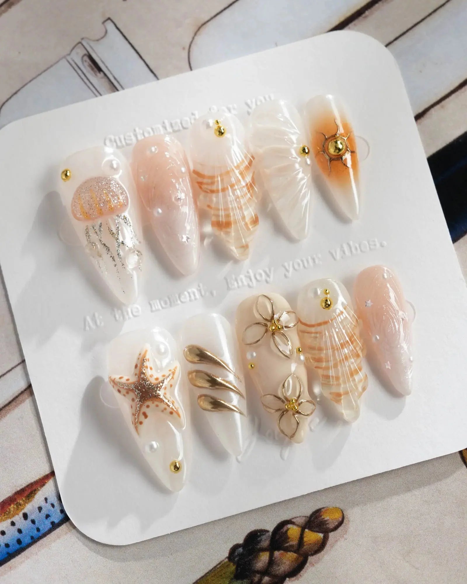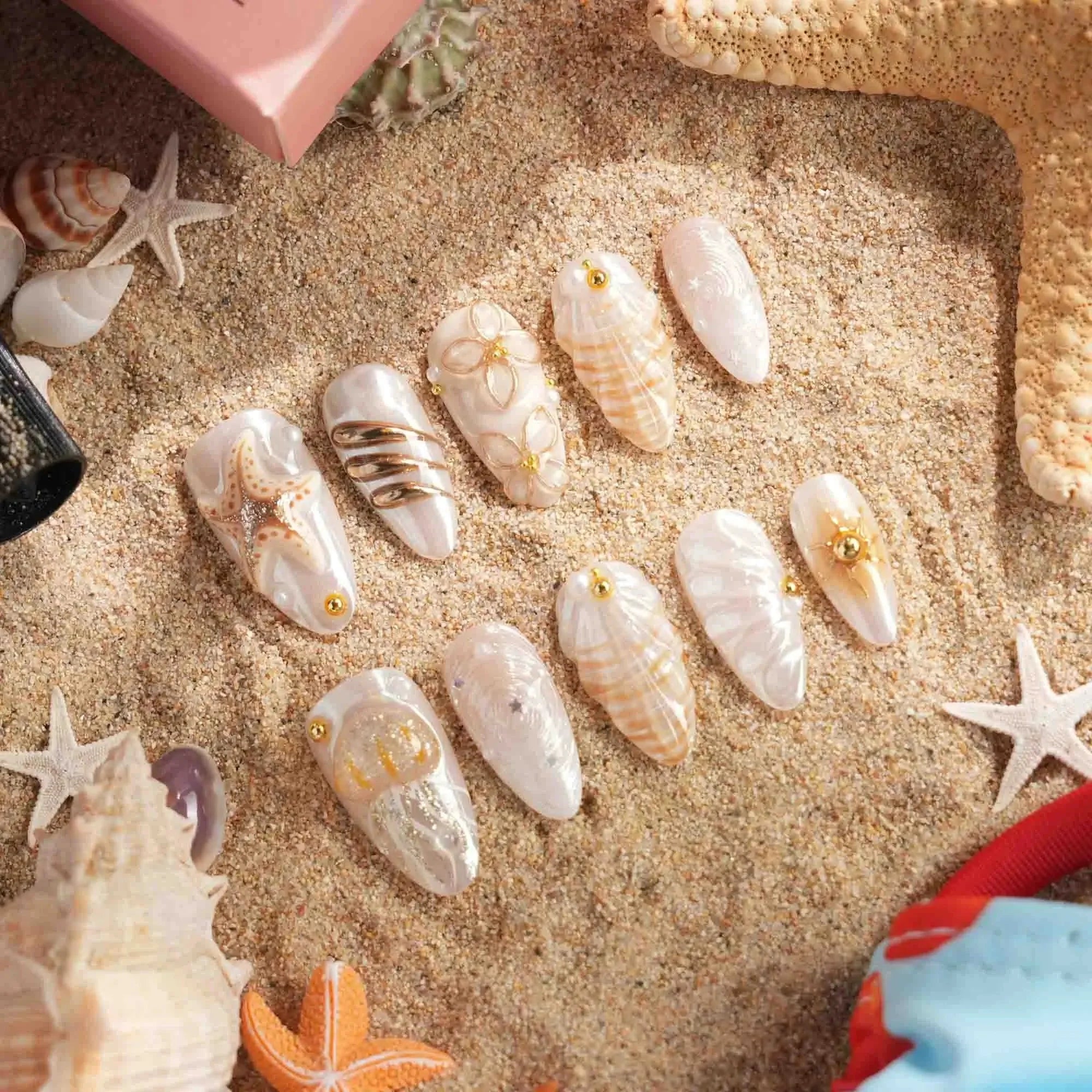 This golden-white set evokes the glamour of a five-star resort at dusk—shimmering blooms, jellyfish shimmer, and wave textures. Pair it with linen and gold accents for understated summer luxury.