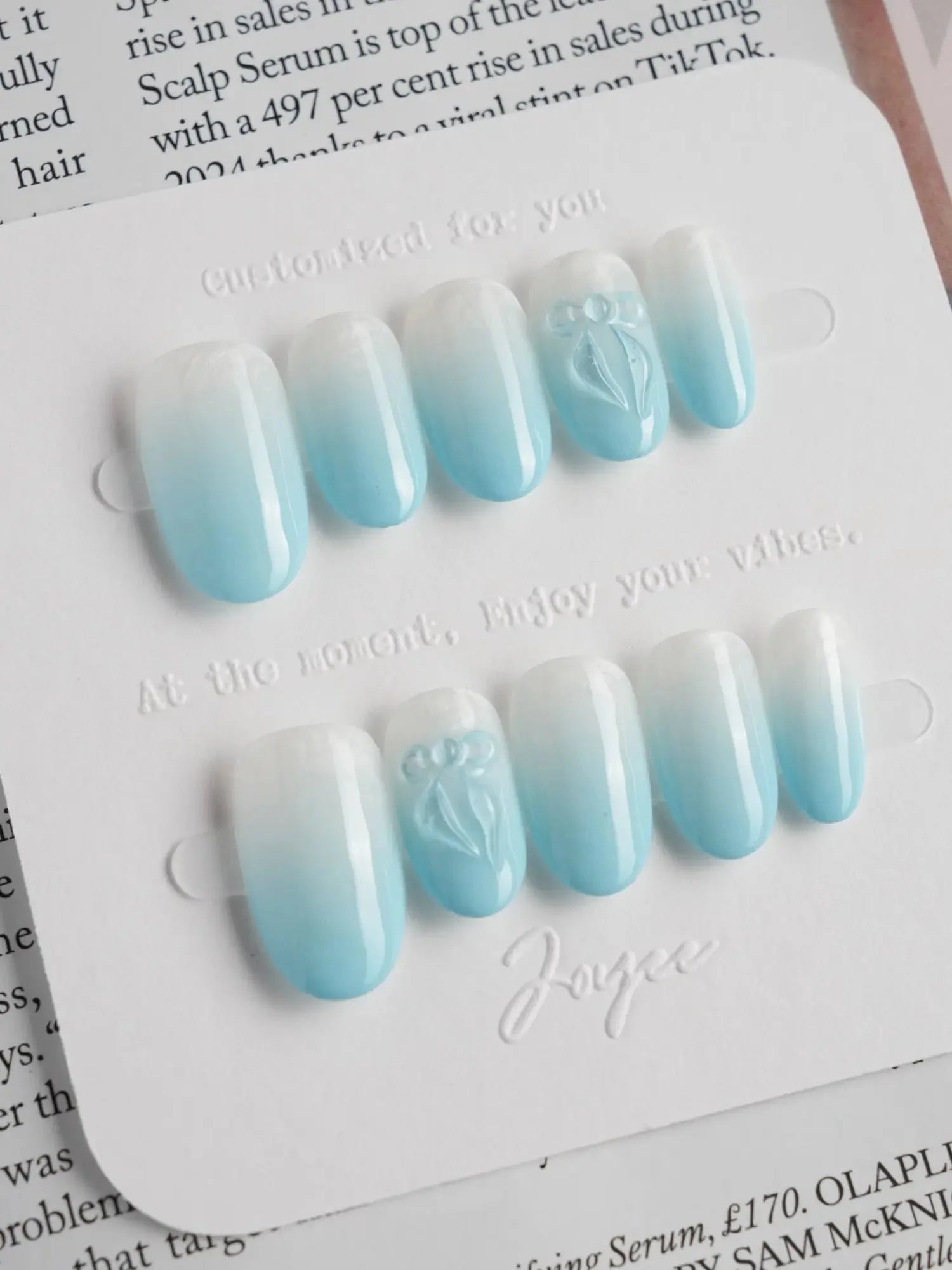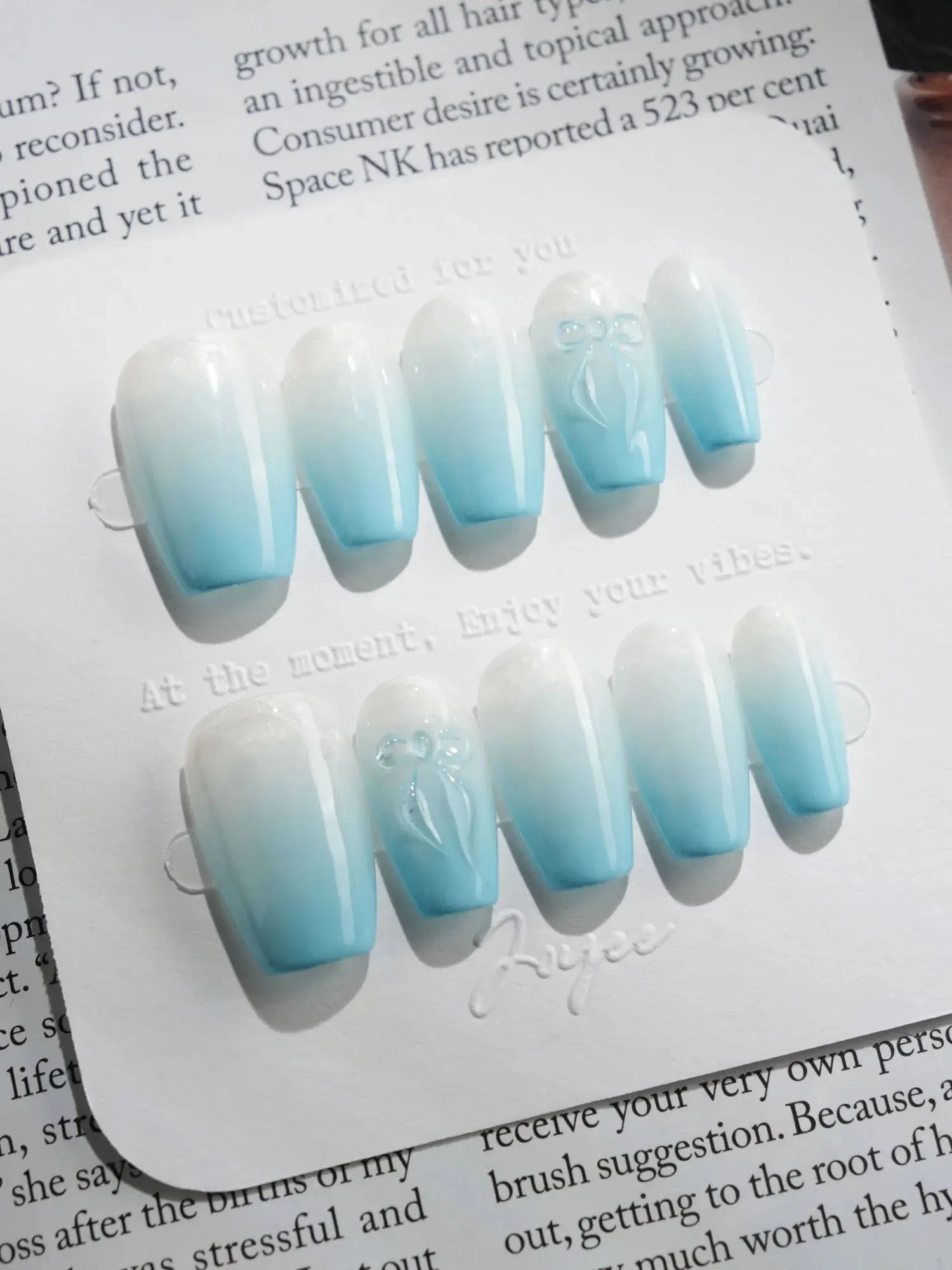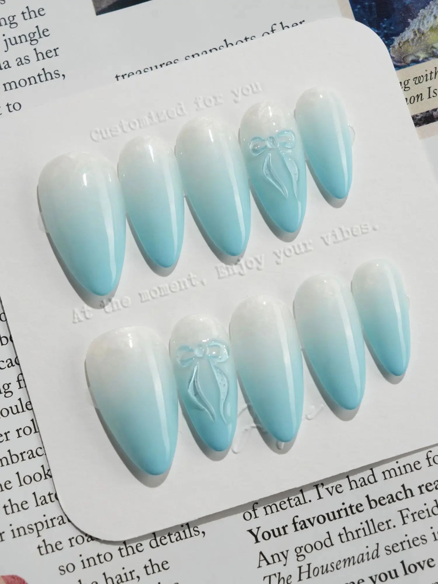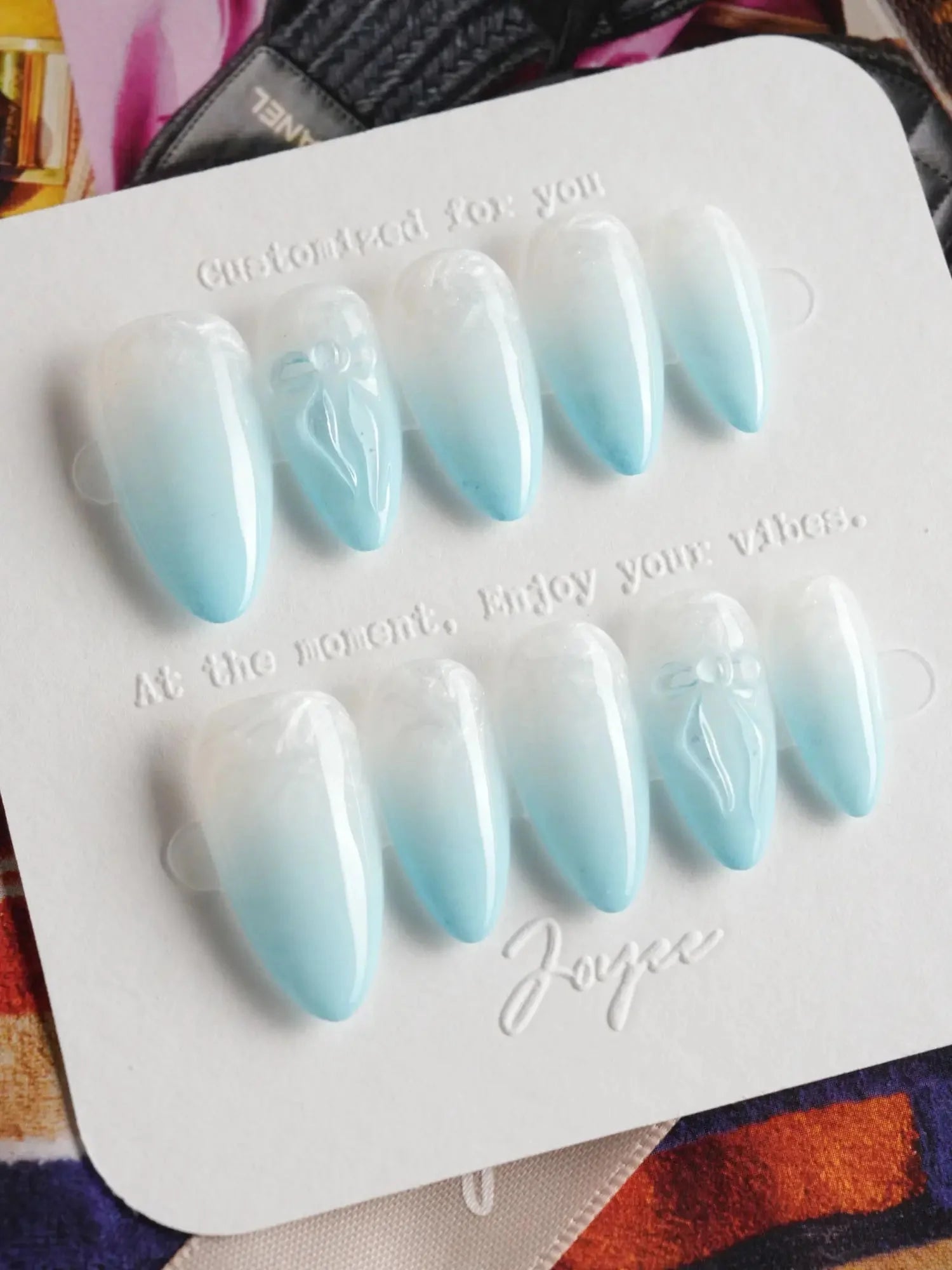 Float into softness with these dreamy baby blue nails. The airy pastel blue base pairs with delicate designs—bows, shimmers, or subtle 3D accents—giving each fingertip a light and ethereal charm. Sweet, soft, and full of glow.