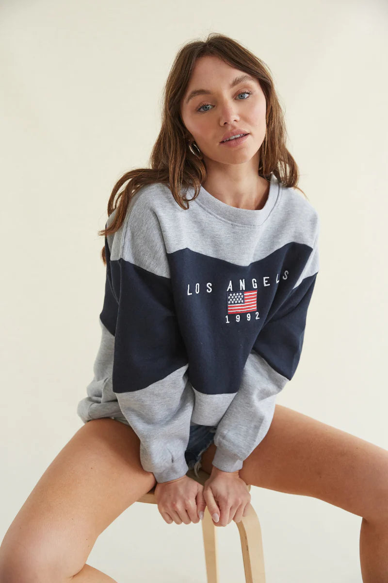 Calling all our California girls! Time to represent in the Los Angeles Sweatshirt! This comfy long sleeve sweater features a color-block design, oversized fit, and crew neck. Pair with some denim shorts for a look that's both cute and comfy!