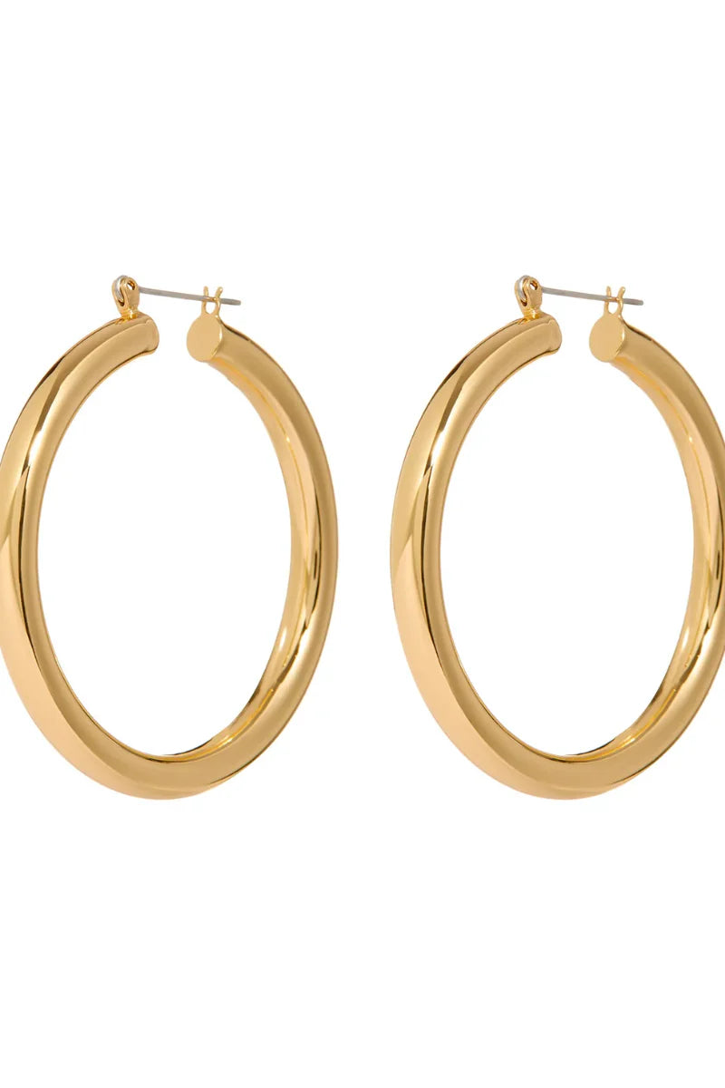 The Amalfi Tube Hoops are a classic pair of large hollow and lightweight metal earrings that are perfect for everyday wear!