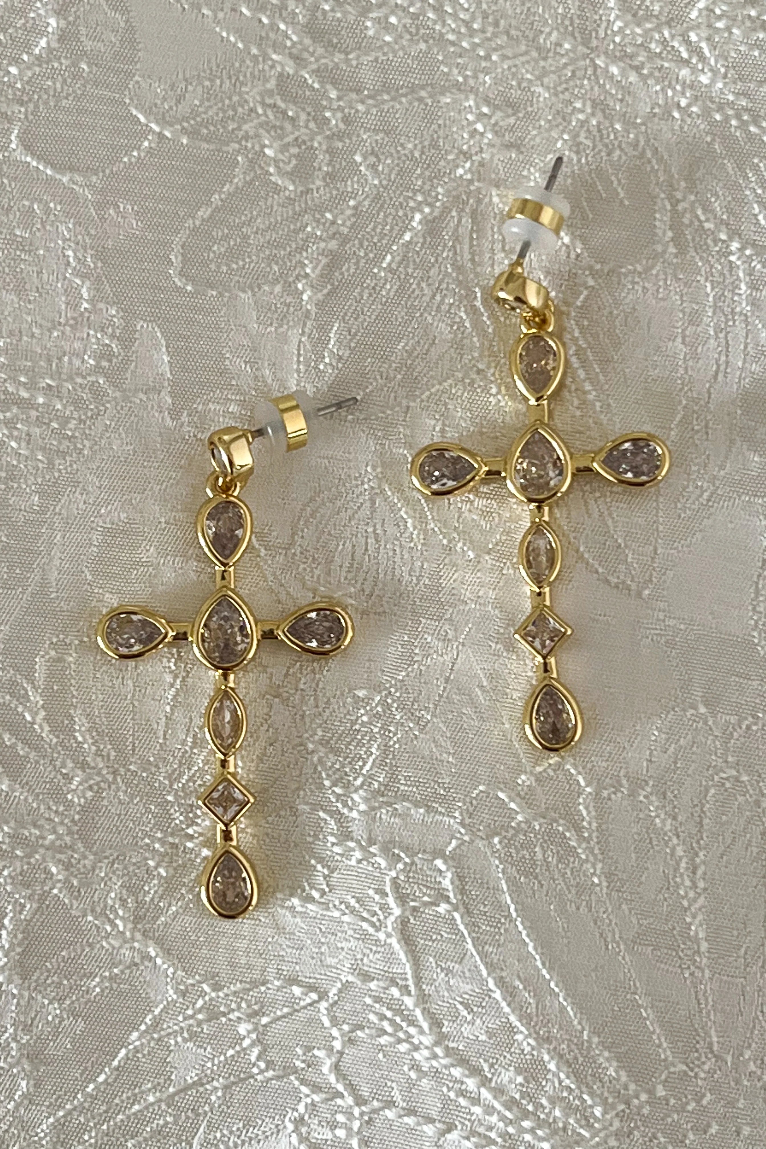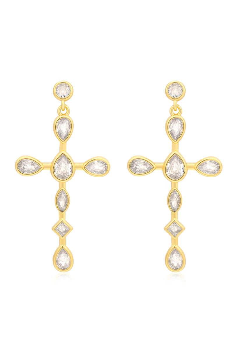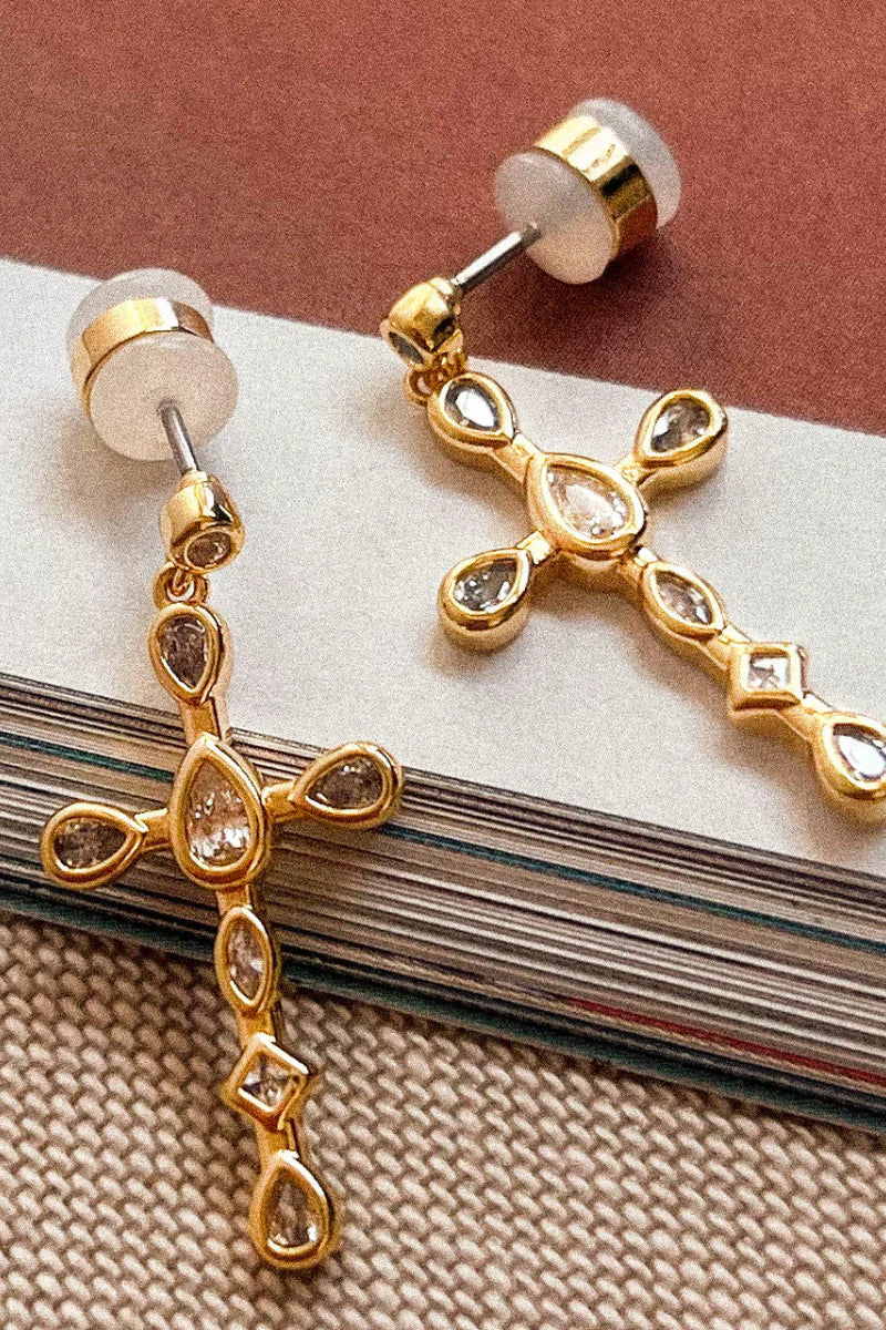 The Bezel Stone Cross Studs will take any outfit to the next level!