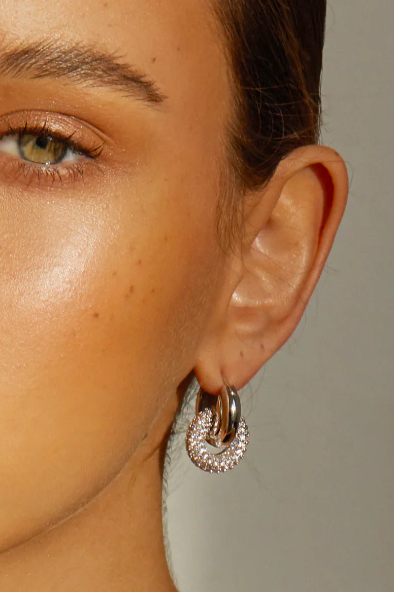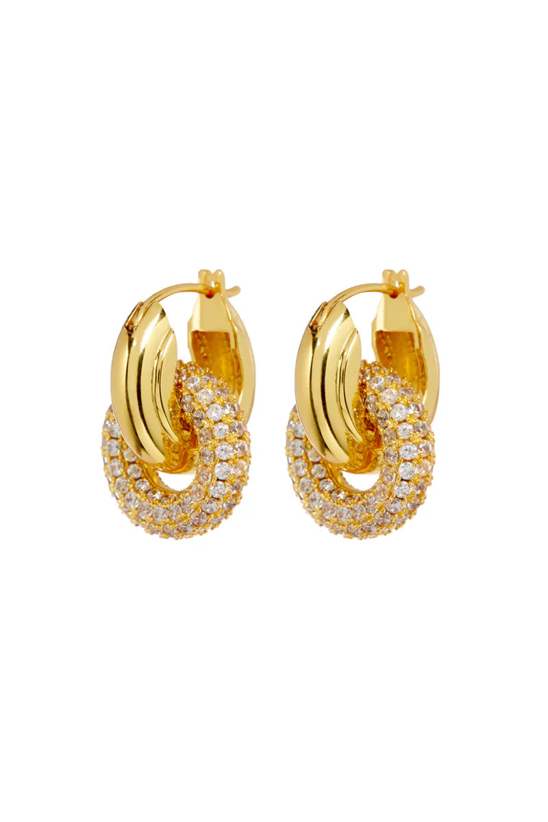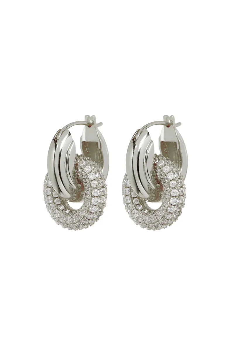 The Pave Interlock Hoops are a pair of luxe metal-ridged hoops with a pave-encrusted loop attached.
