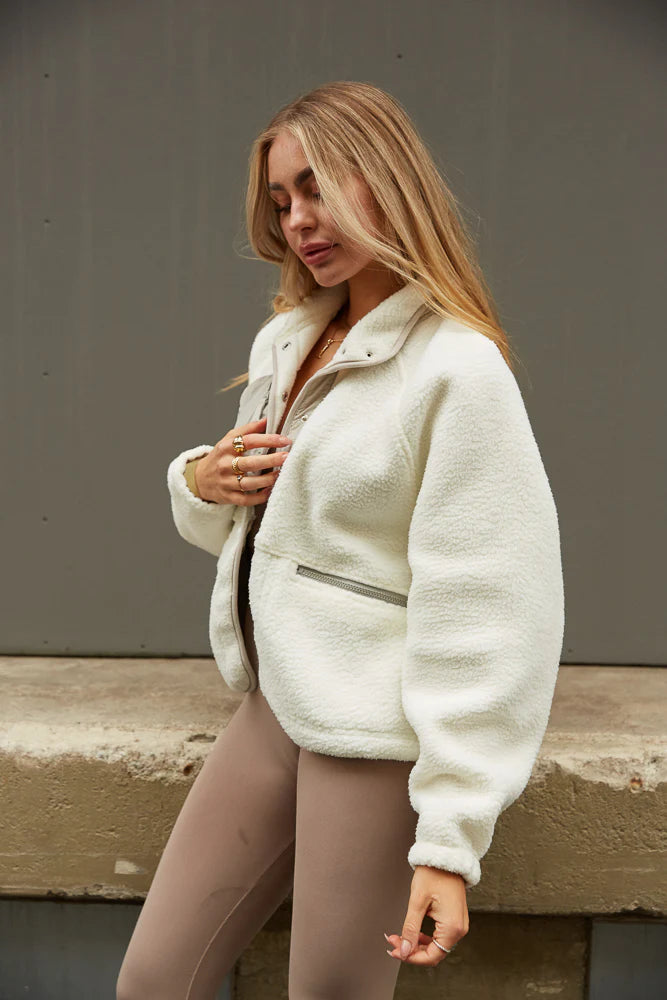 Cozy up in the Maverick Fleece Jacket! Featuring a button up front, a front zip pocket detail, and a soft fleece-like material.