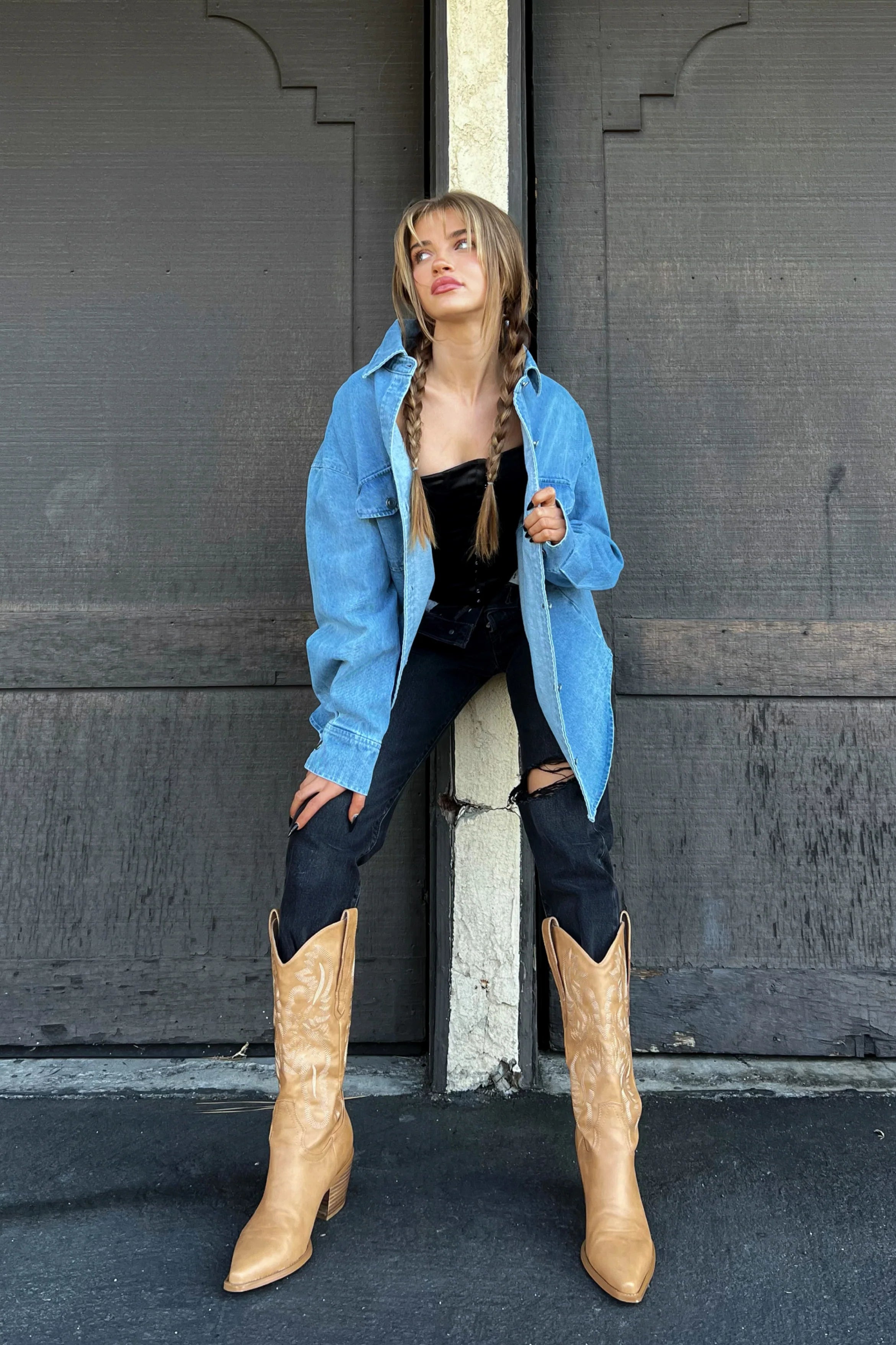 The fall wardrobe staple you've been waiting for! The Michelle Denim Shacket features double front pockets and silver buttons. Pair with a mini skirt to complete this vintage inspired look.