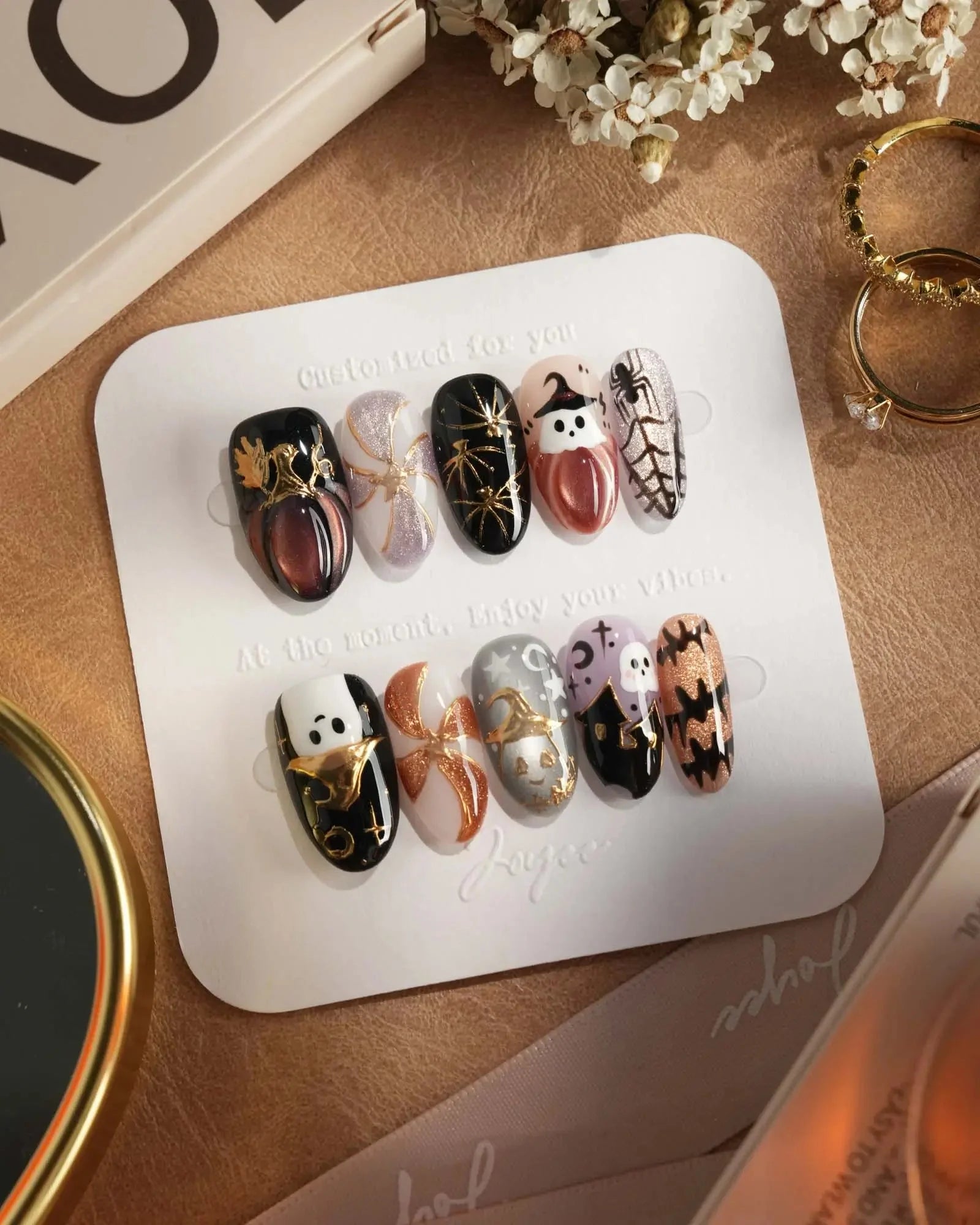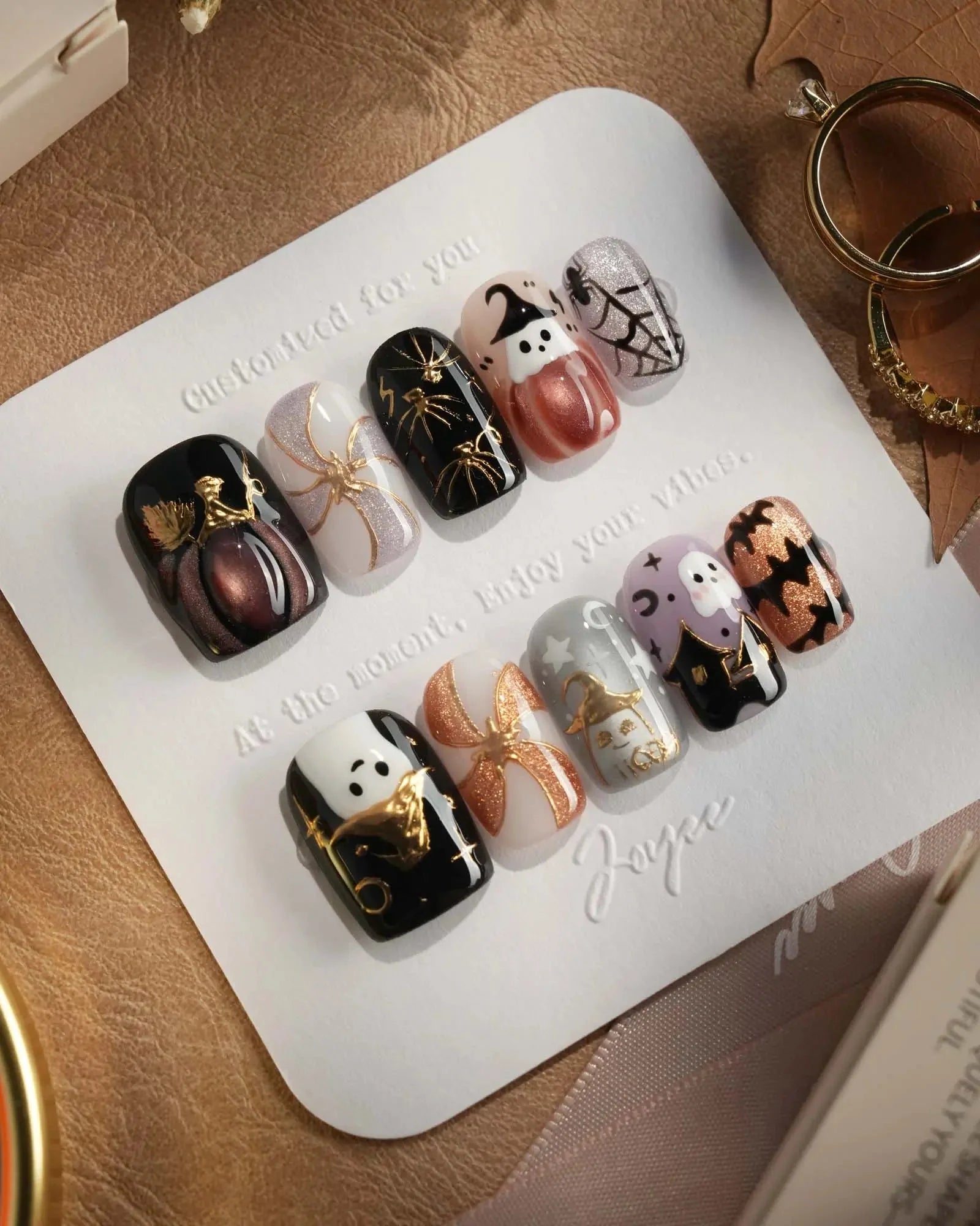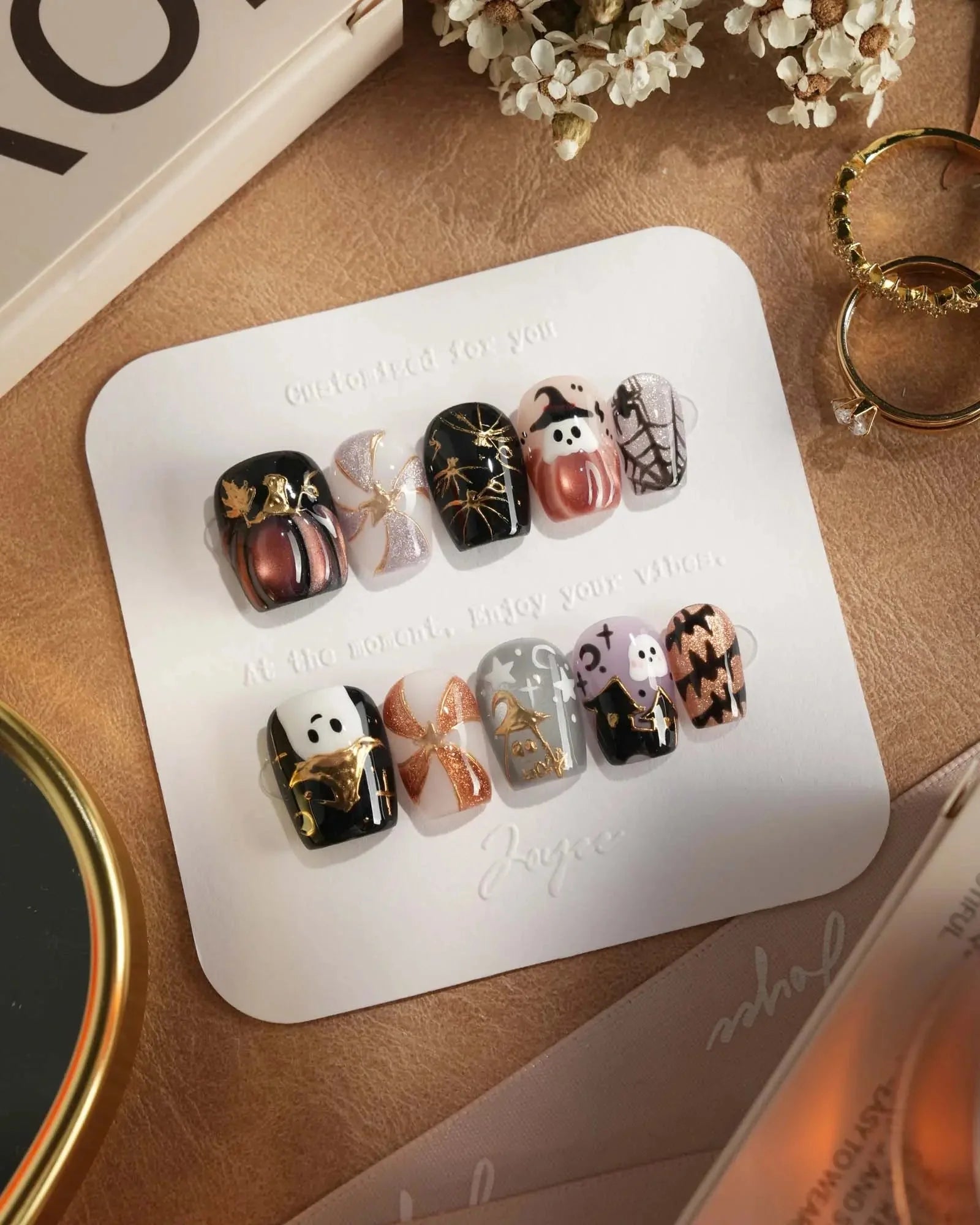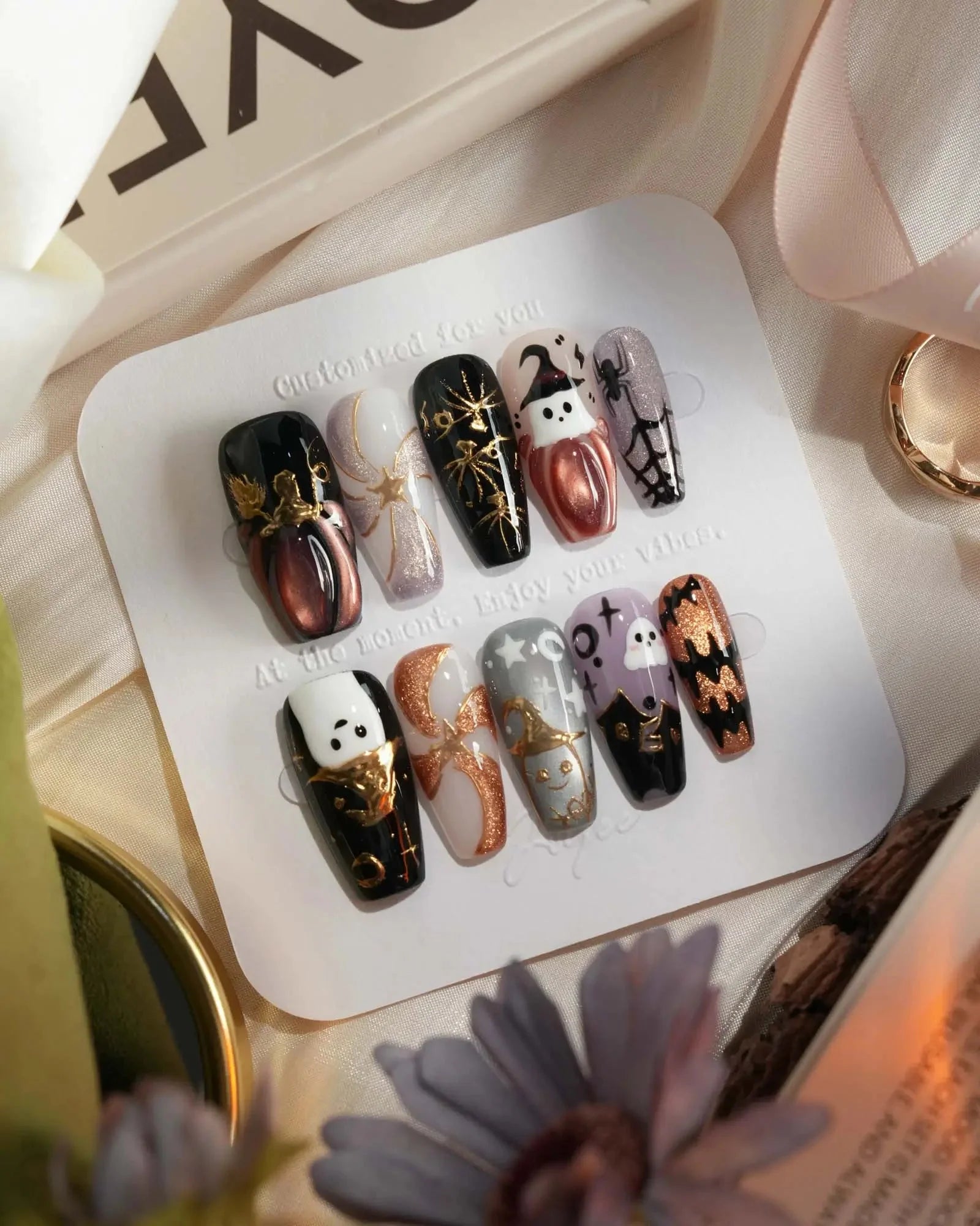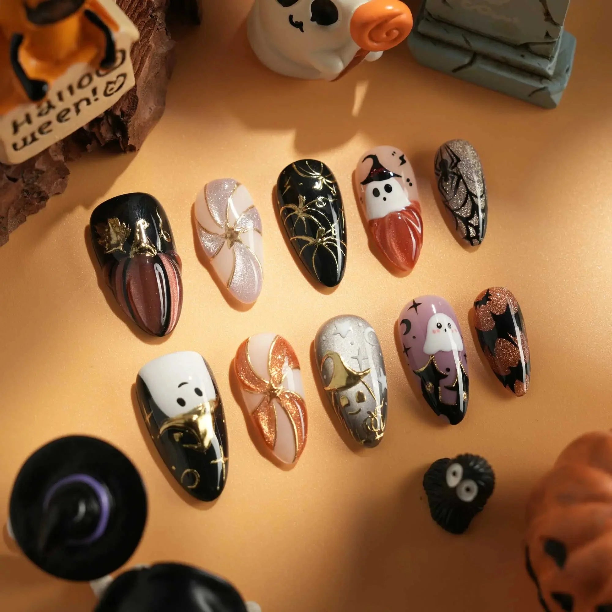 Hand-painted pumpkins, candies, and ghosts under a deep midnight sky—this set captures the heart of a Halloween party in full swing. Not just fear, but joy, celebration, and light in the darkness.