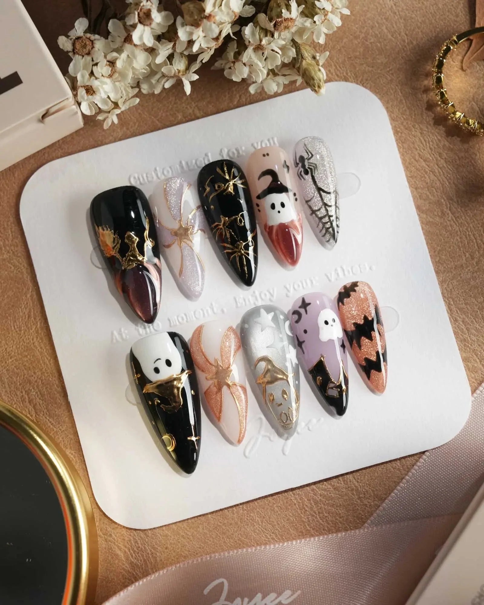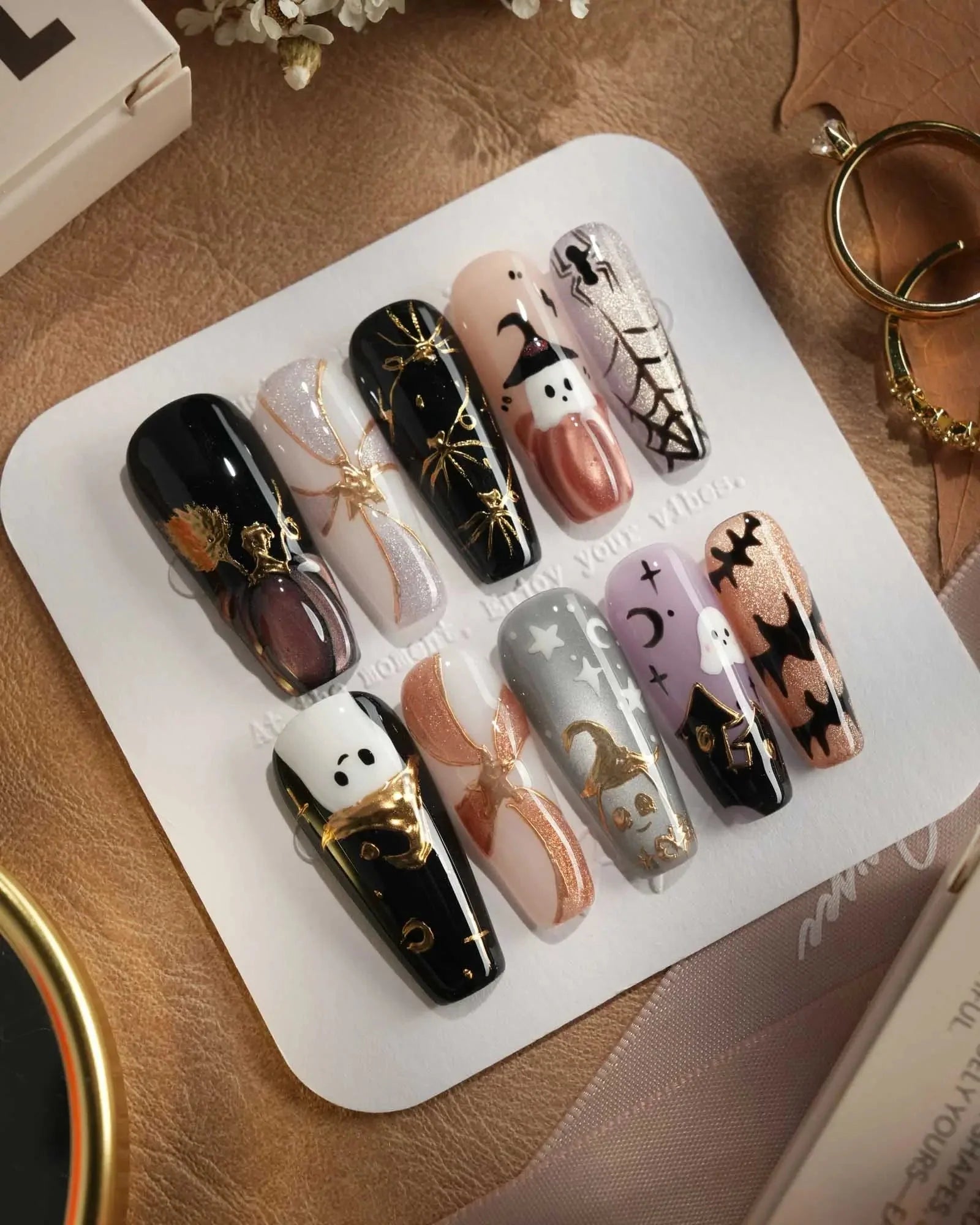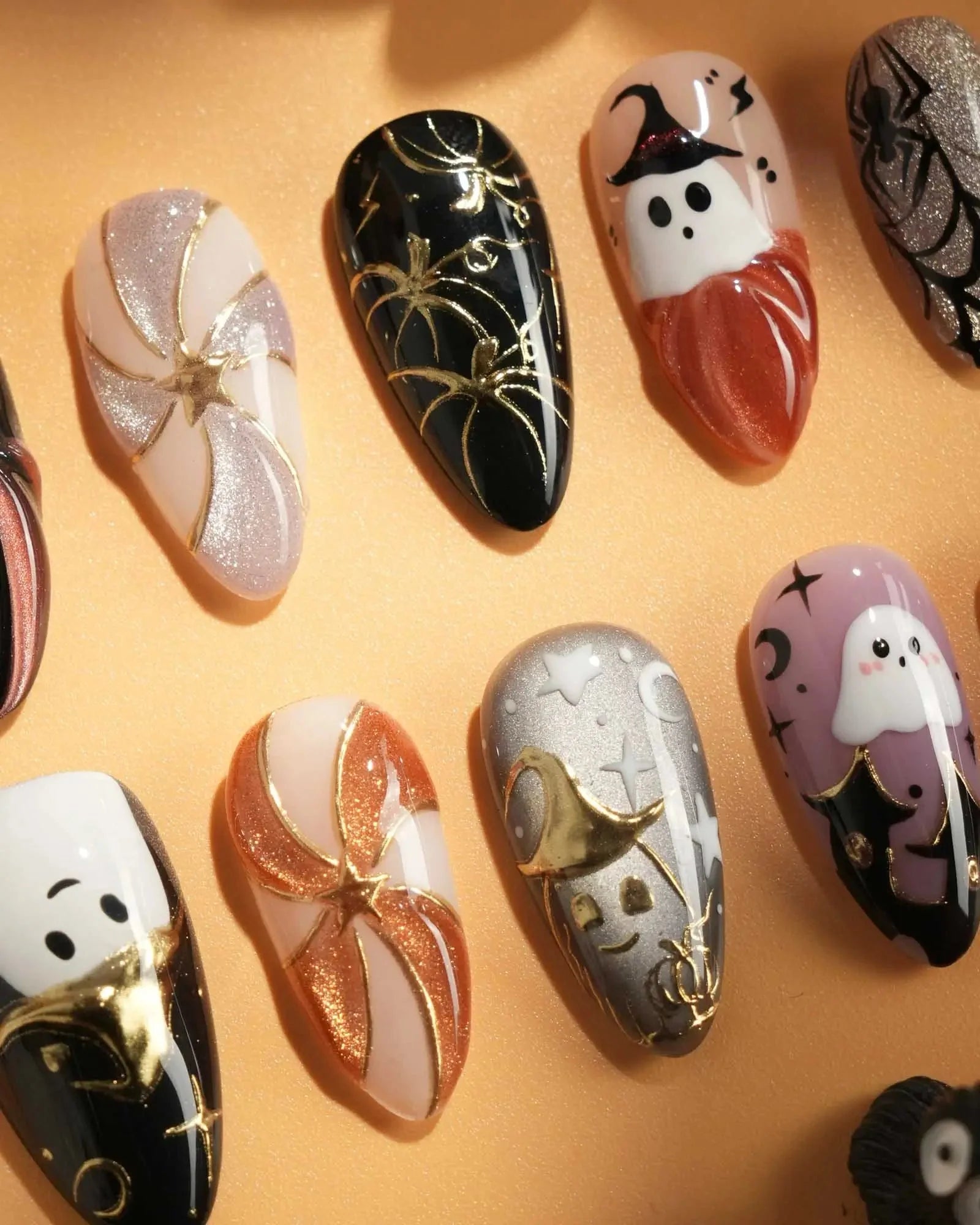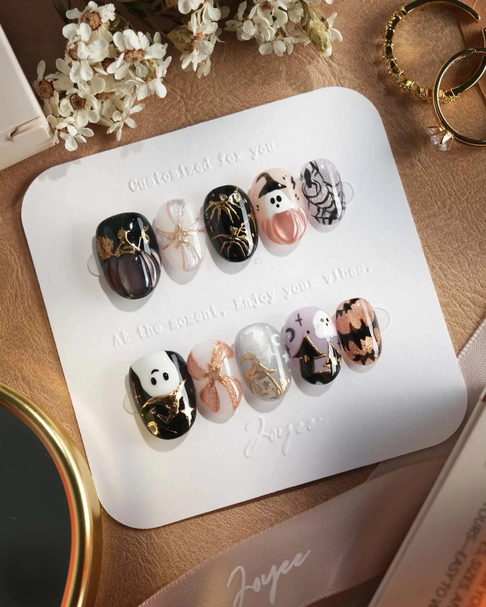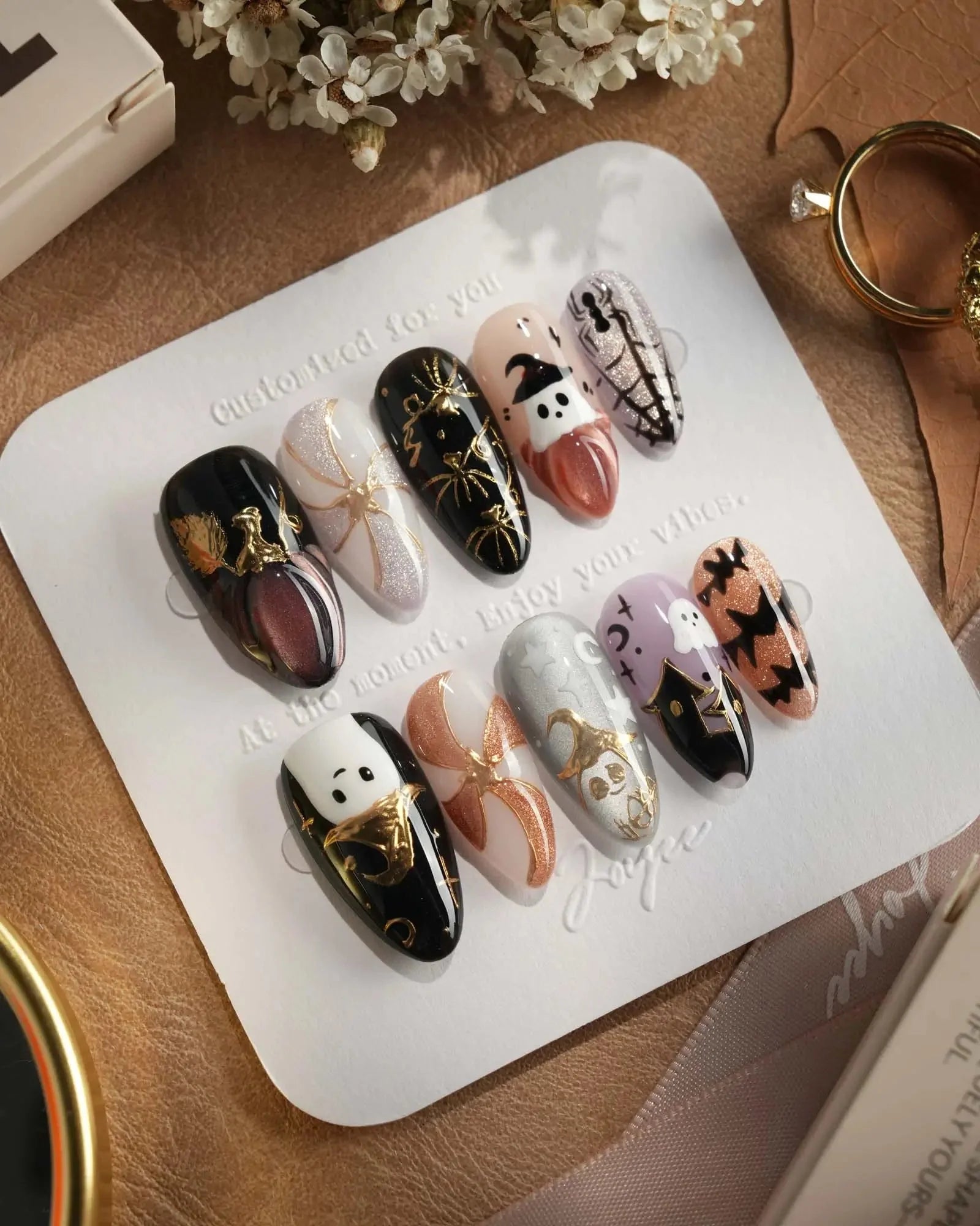 Hand-painted pumpkins, candies, and ghosts under a deep midnight sky—this set captures the heart of a Halloween party in full swing. Not just fear, but joy, celebration, and light in the darkness.