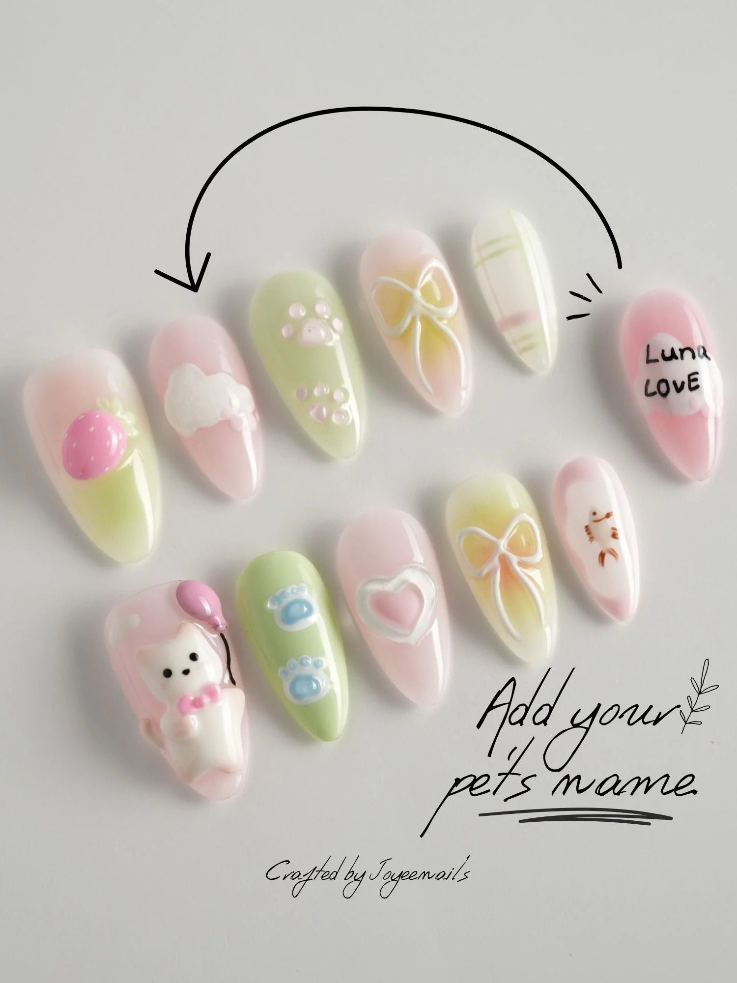 Memory collections customization: Enter pet’s name (e.g., Toby) in [Add Your Pet's Name] (limit: 5 letters). We’ll customize this pet nail (no design changes, letters only, no long names). For fully custom designs, email customer service.