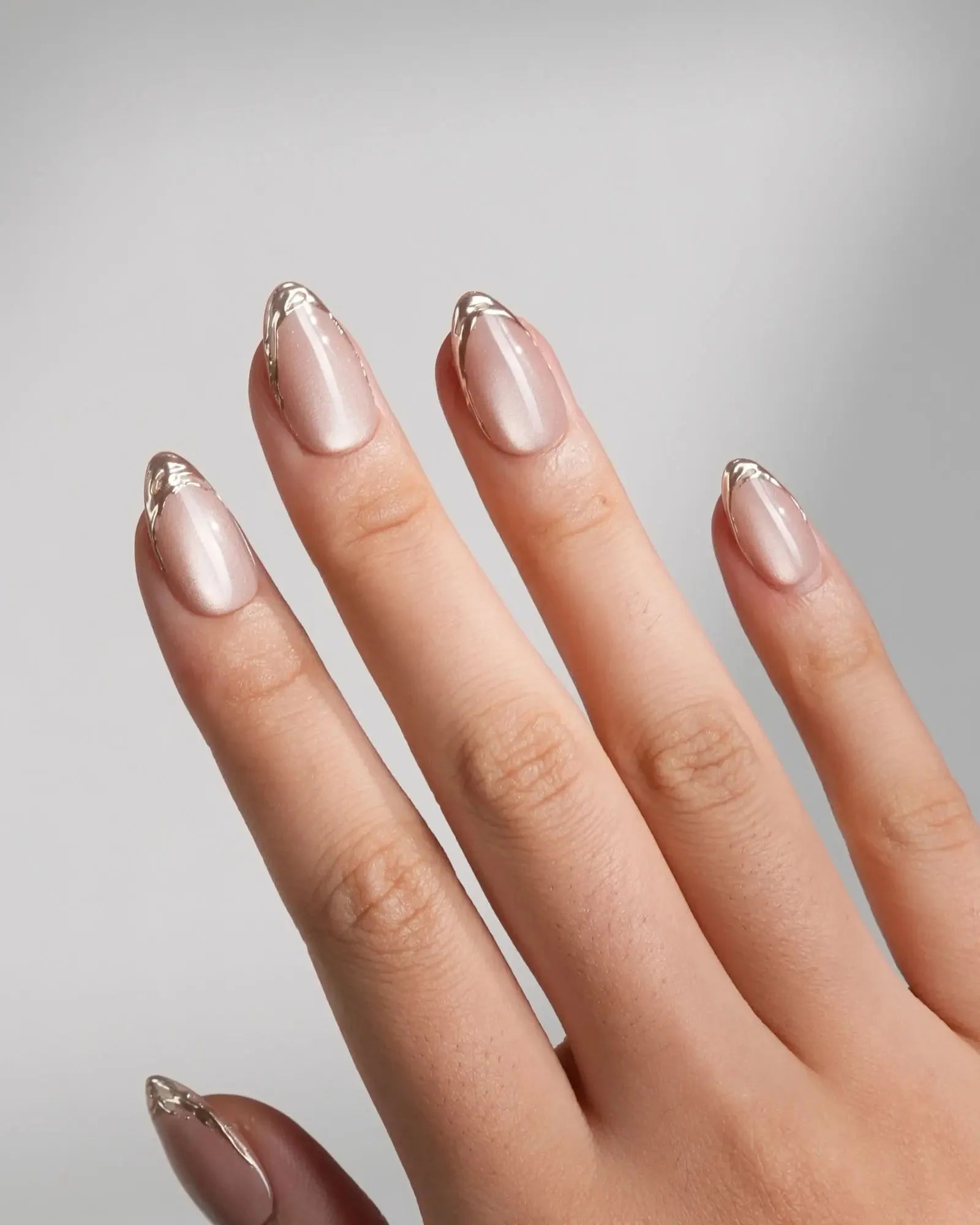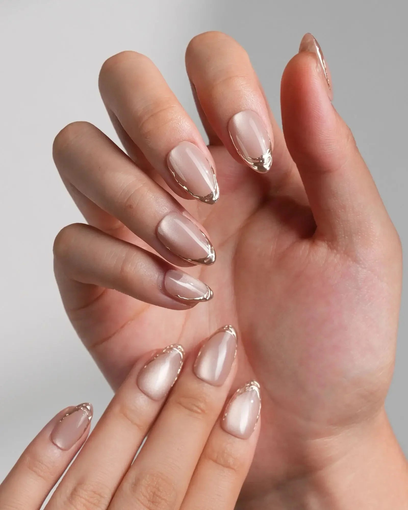 Nude Cat Eye Nails with Gold French Tips