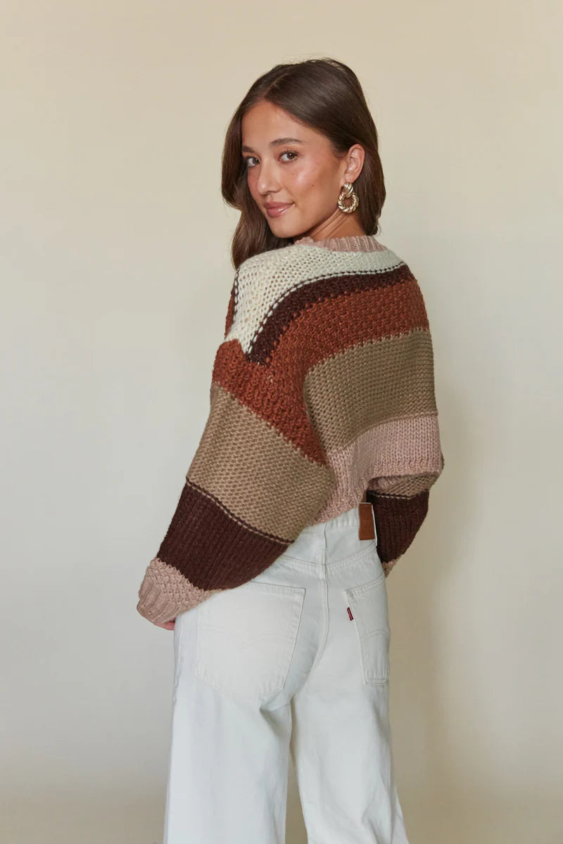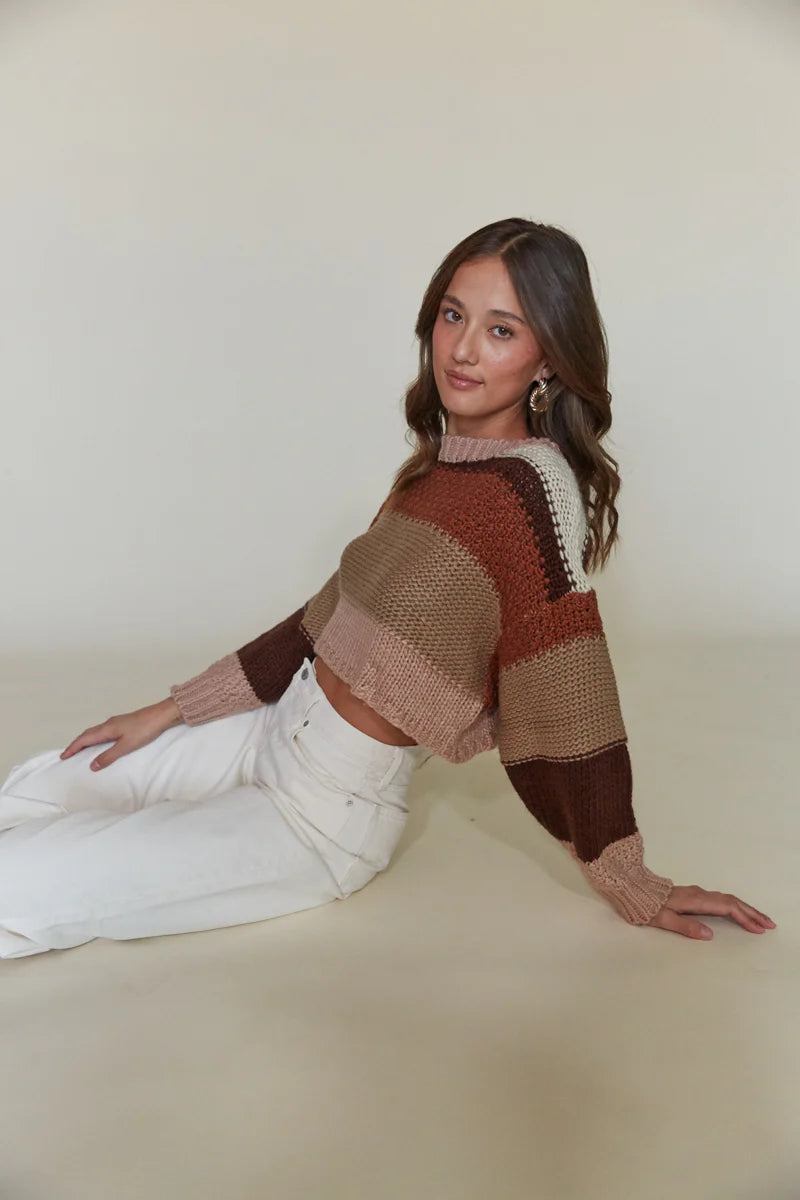 Make your days cozier with the Sheridan Cropped Striped Sweater! This cuddly knit top features a horizontal striped design, relaxed fit, long sleeves, and a scoop neckline. Pair with your favorite jeans for the perfect comfy and casual look!
