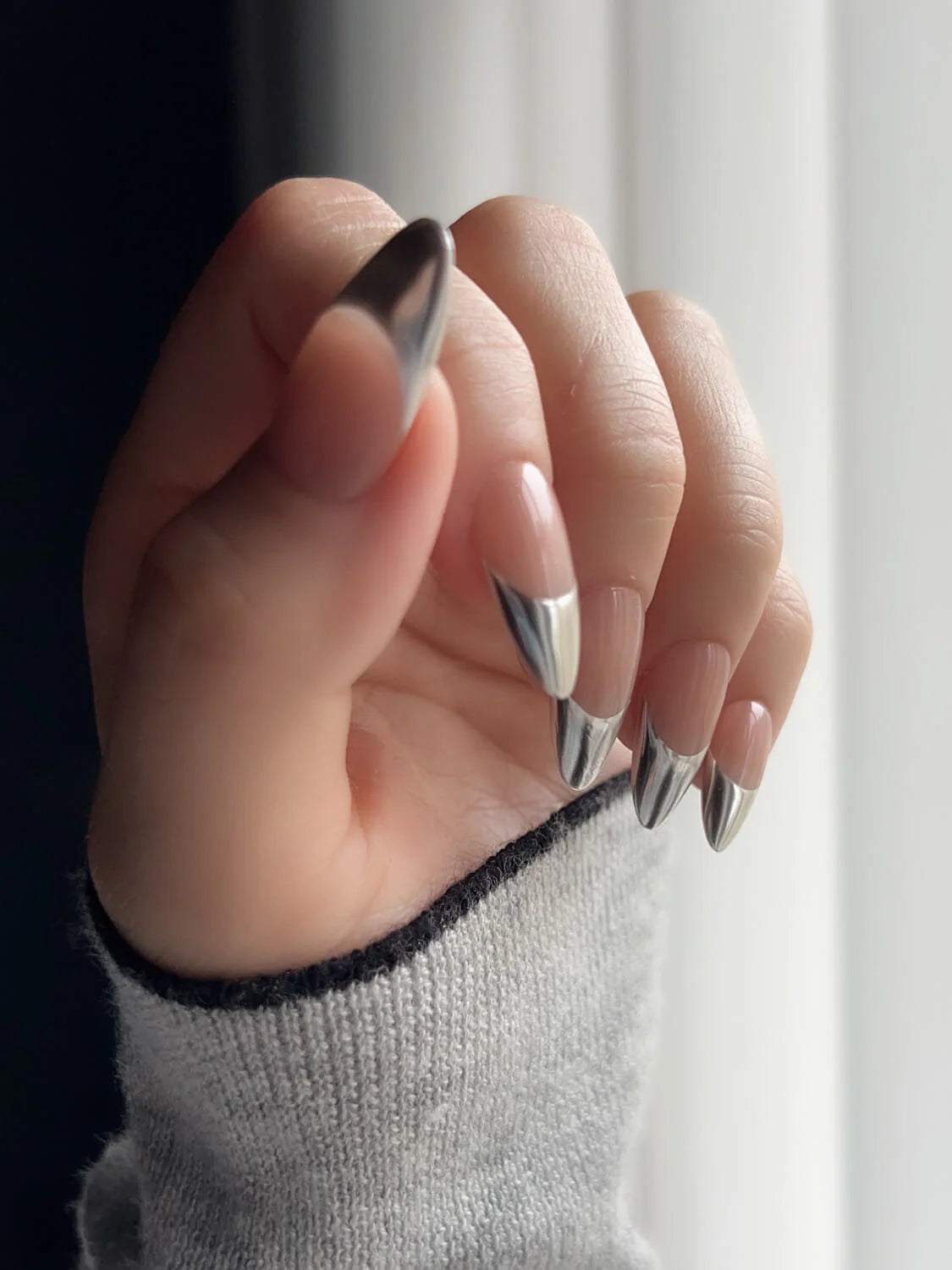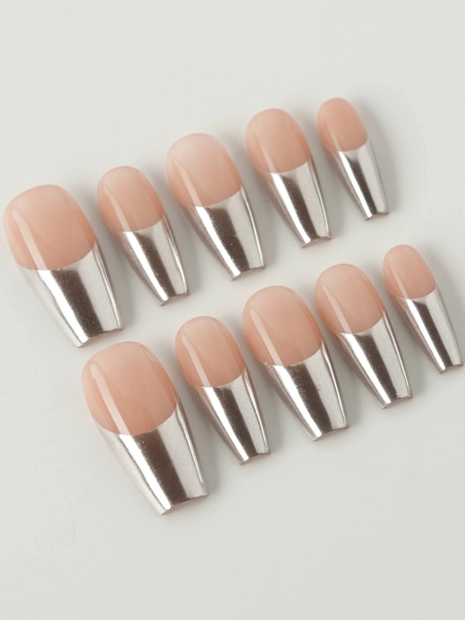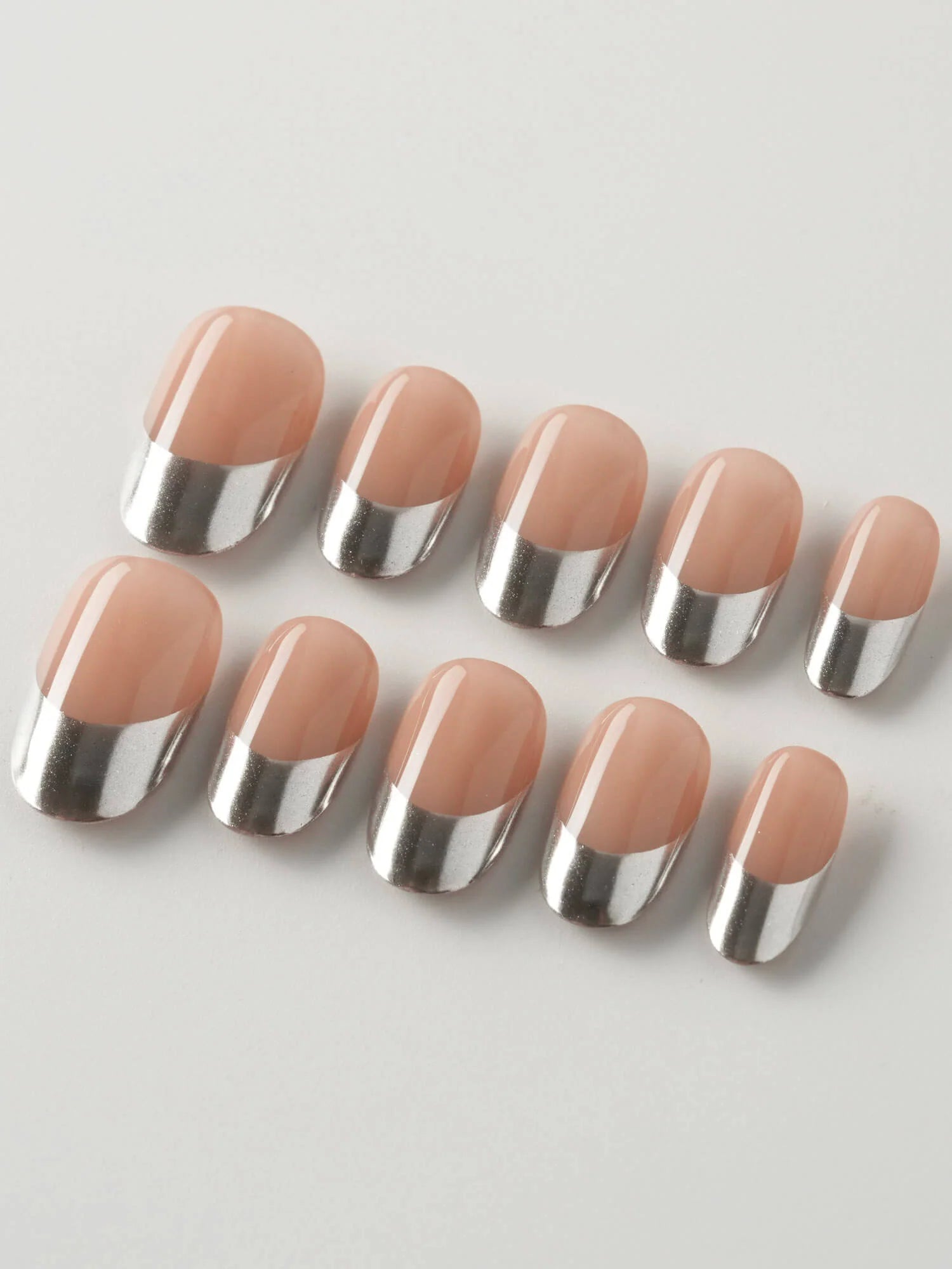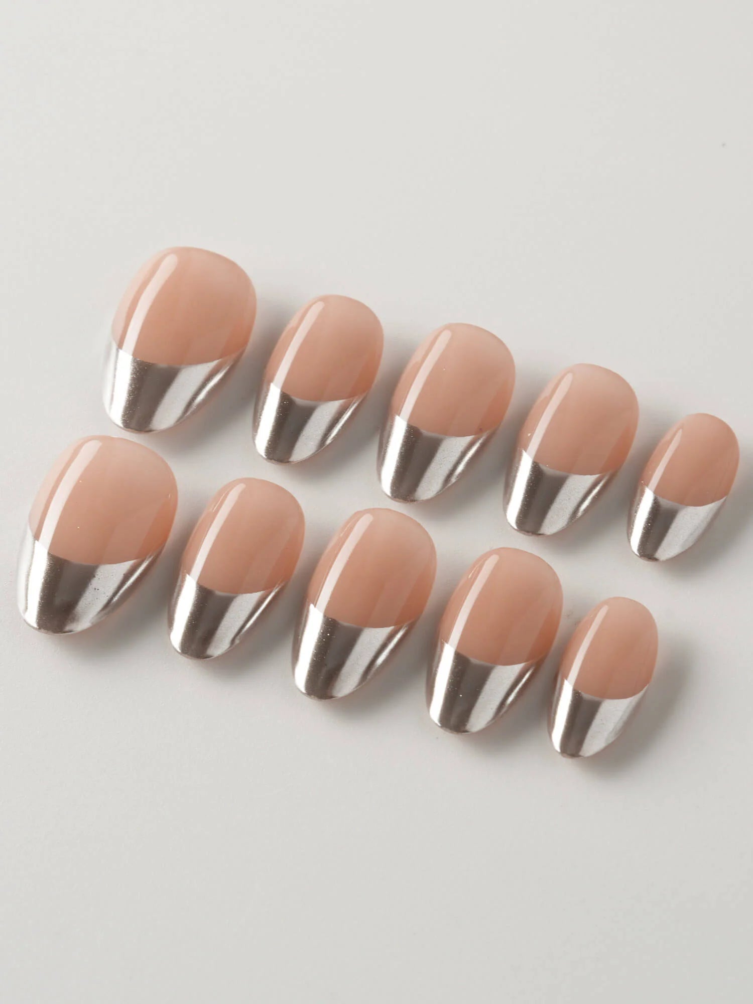 Classic French elegance meets stunning metallic chrome shine. Each set is intricately sculpted by hand using salon-grade gel, giving you that dazzling futuristic lookwithout a trip to the salon. I love their brilliance—simple, yet always catching the eye with a lethal sparkle. Trust me, they will keep shining on your fingertips, especially unafraid of the night.