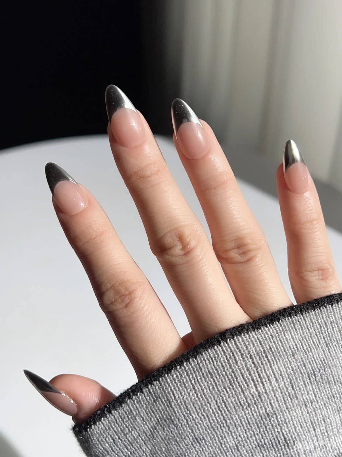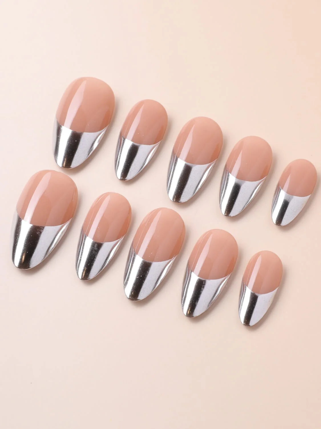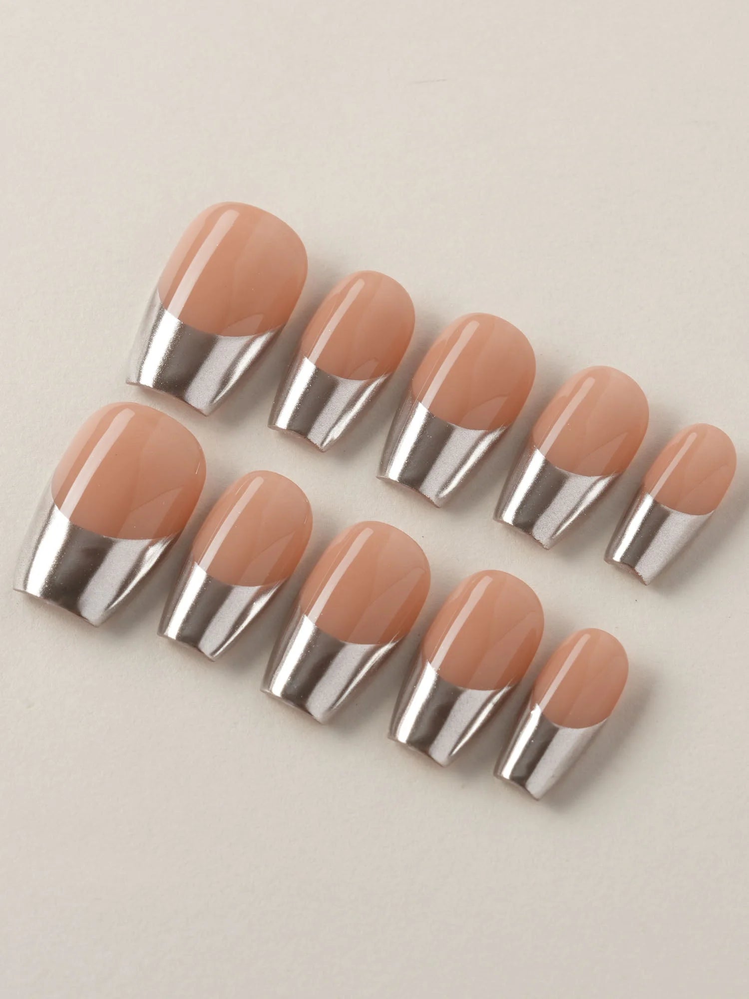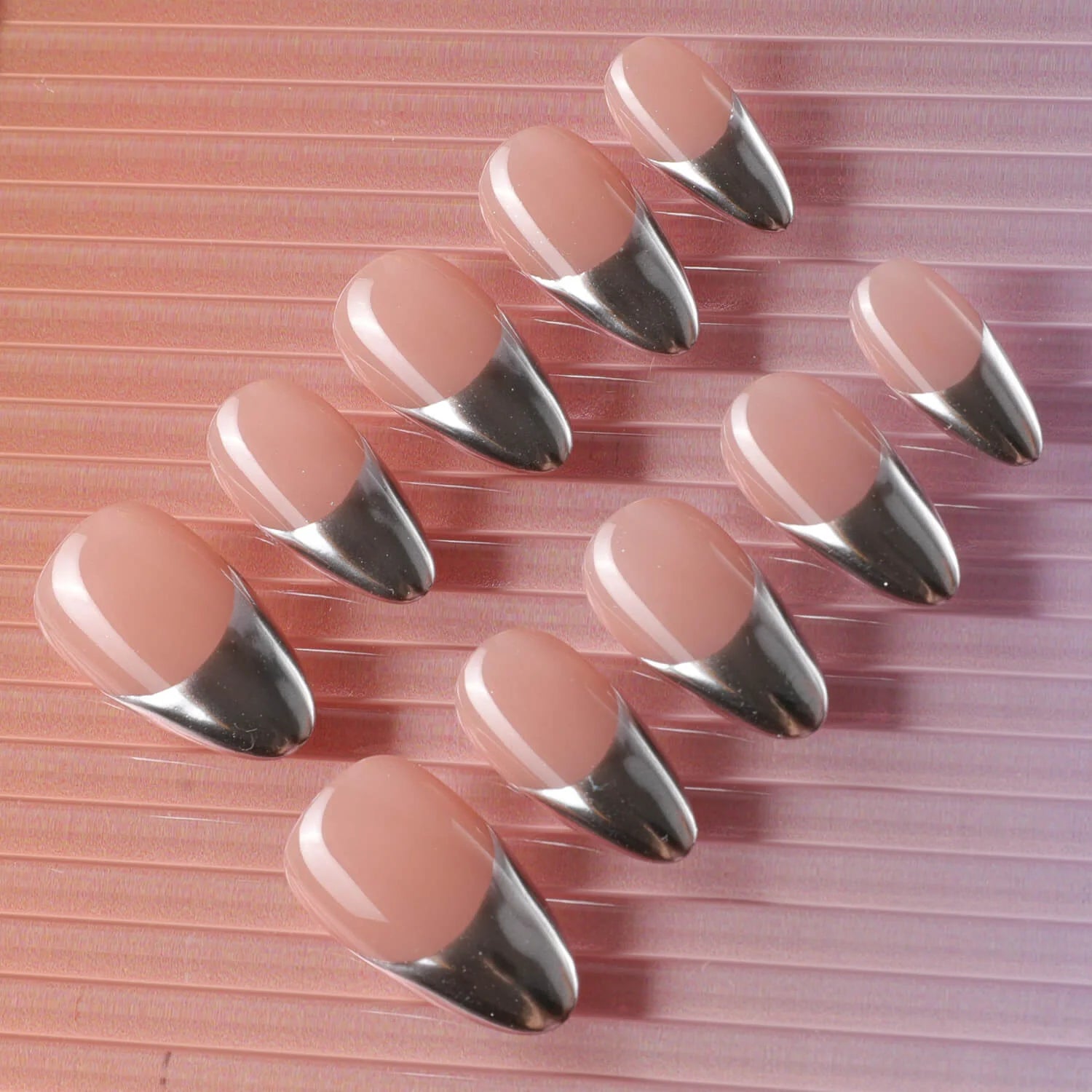 Classic French elegance meets stunning metallic chrome shine. Each set is intricately sculpted by hand using salon-grade gel, giving you that dazzling futuristic lookwithout a trip to the salon. I love their brilliance—simple, yet always catching the eye with a lethal sparkle. Trust me, they will keep shining on your fingertips, especially unafraid of the night.