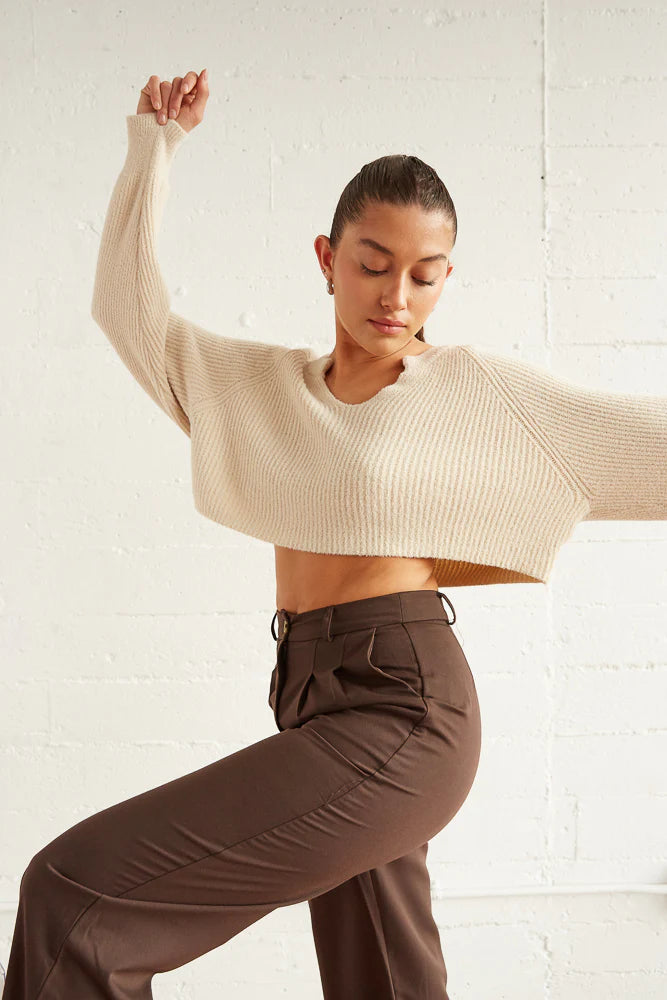 Fall in love with the Sky Crop Knit Sweater! Featuring a notch v neckline, dropped sleeves for a relaxed fit, and an ultra soft ribbed knit design. Available in cream and blue. Pair with a cute skirt for a flirty final touch!