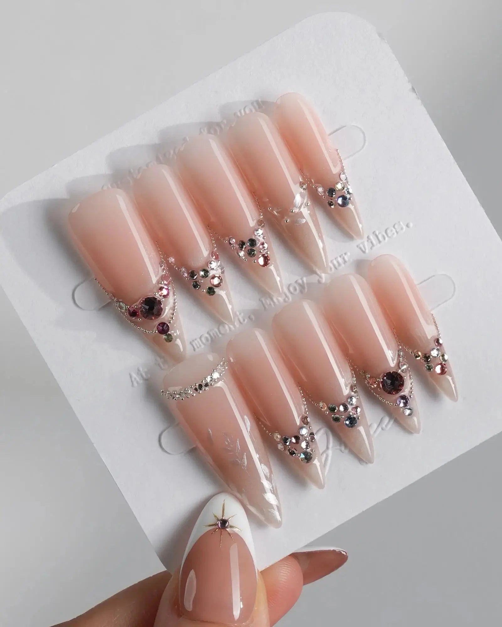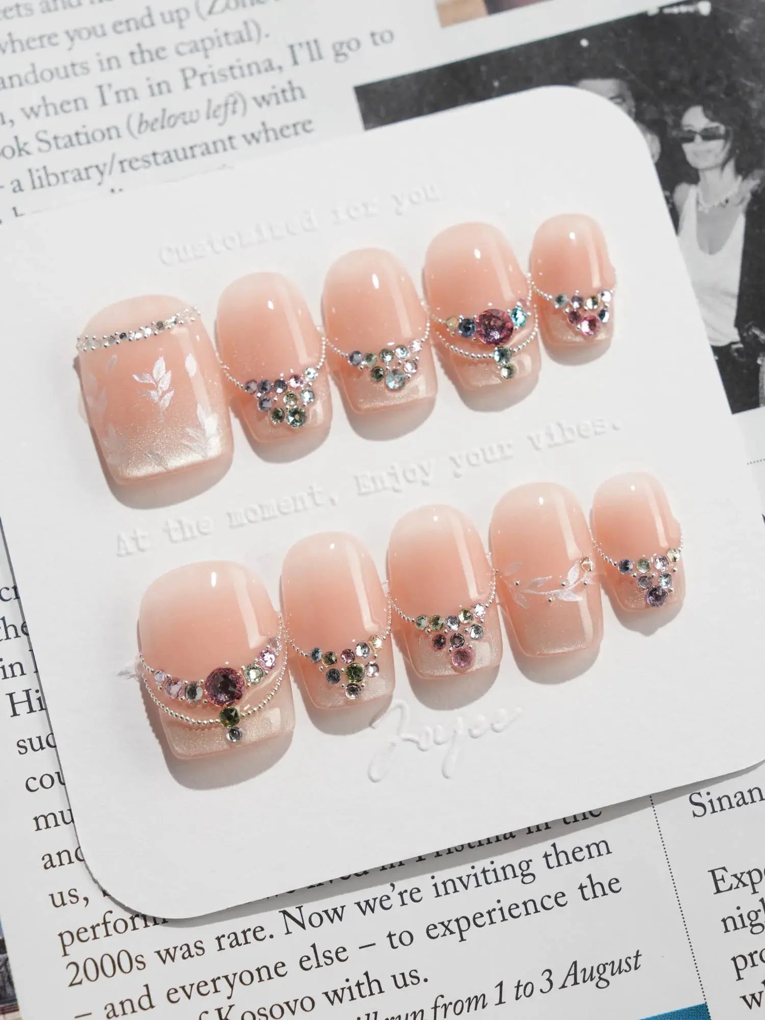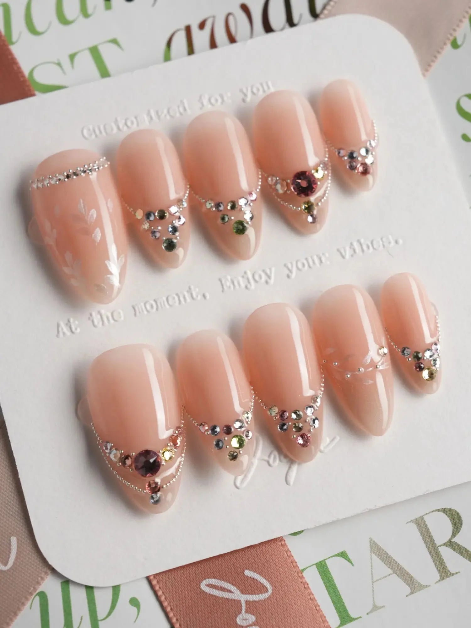 Memory collections customization: Select color in [Switchable Main Stone Color] (round gemstones only). We use Swarovski gems for your wedding press-on nail set (color change for one thumb and ring finger only). For fully custom designs, email customer service.