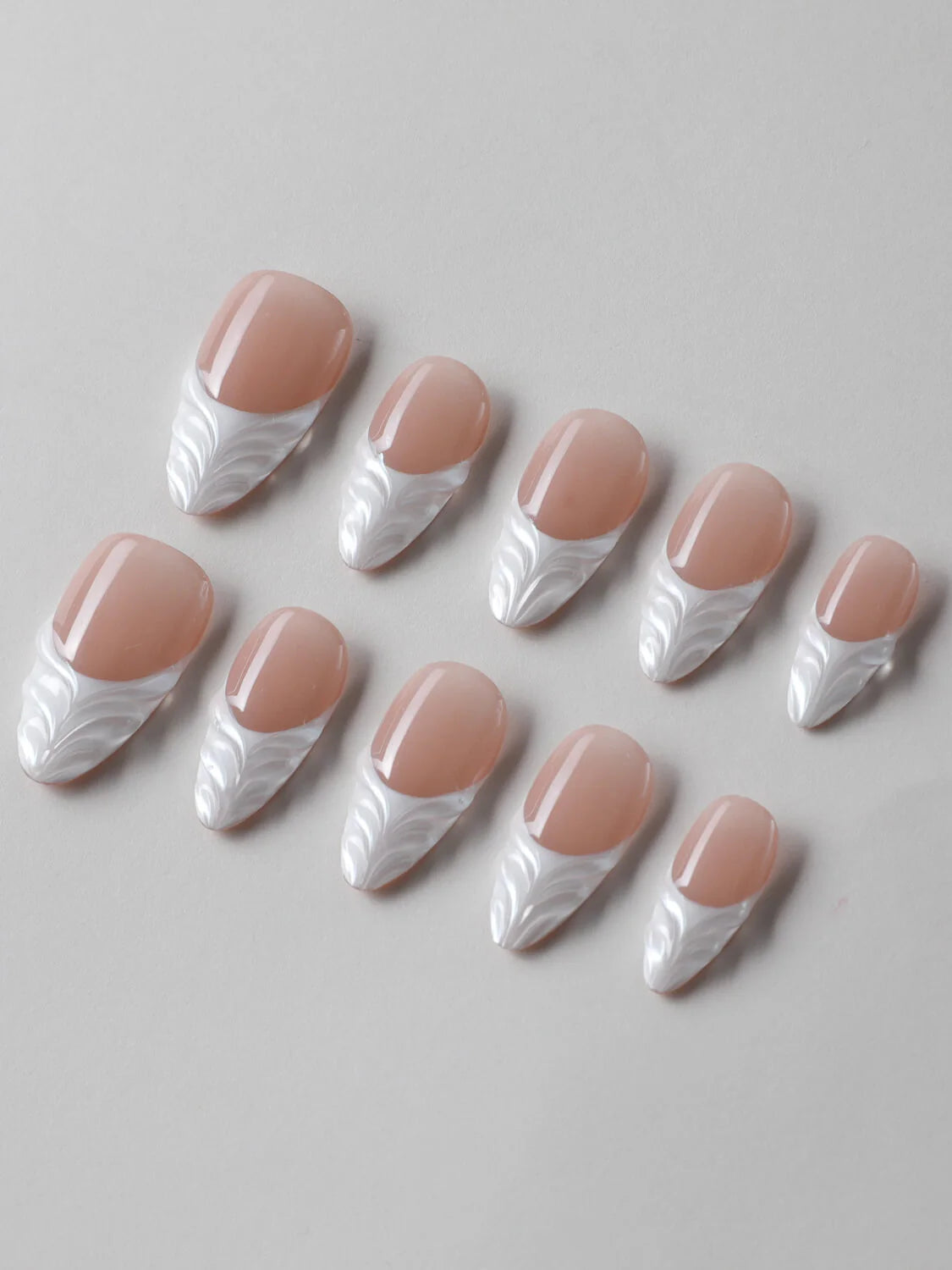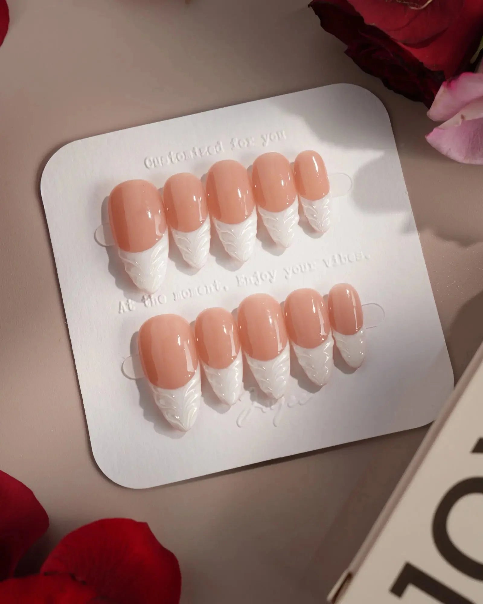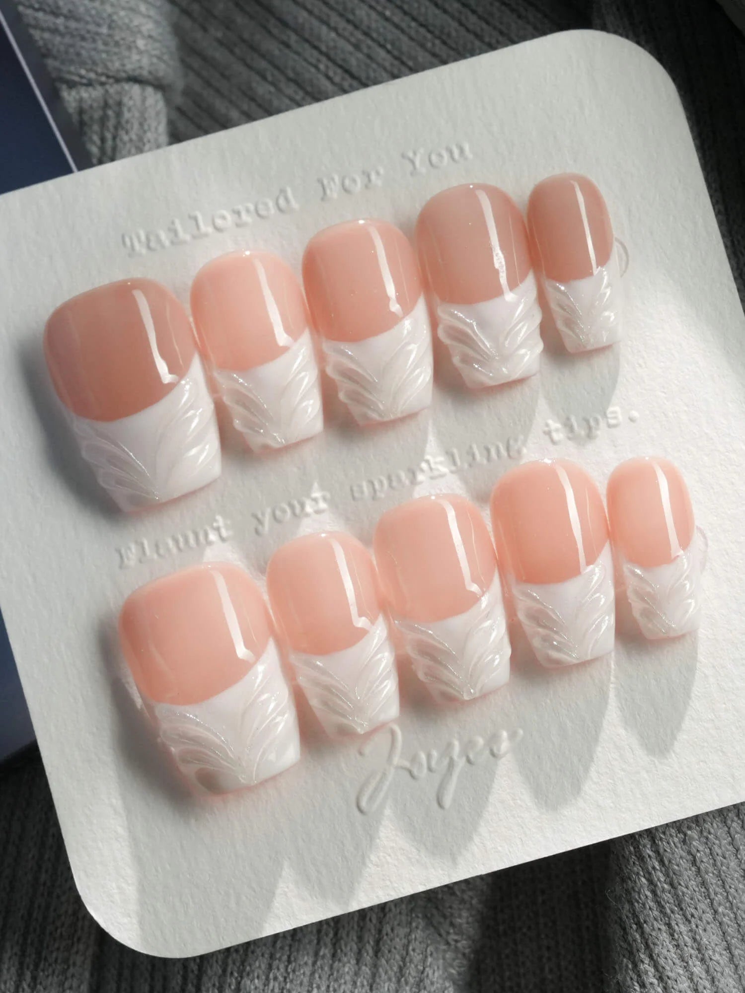 Reinvent tradition with "3D Classic French". The timeless elegance of French tips, enhanced with transparent sculpted gel, adds a modern twist to a classic look.