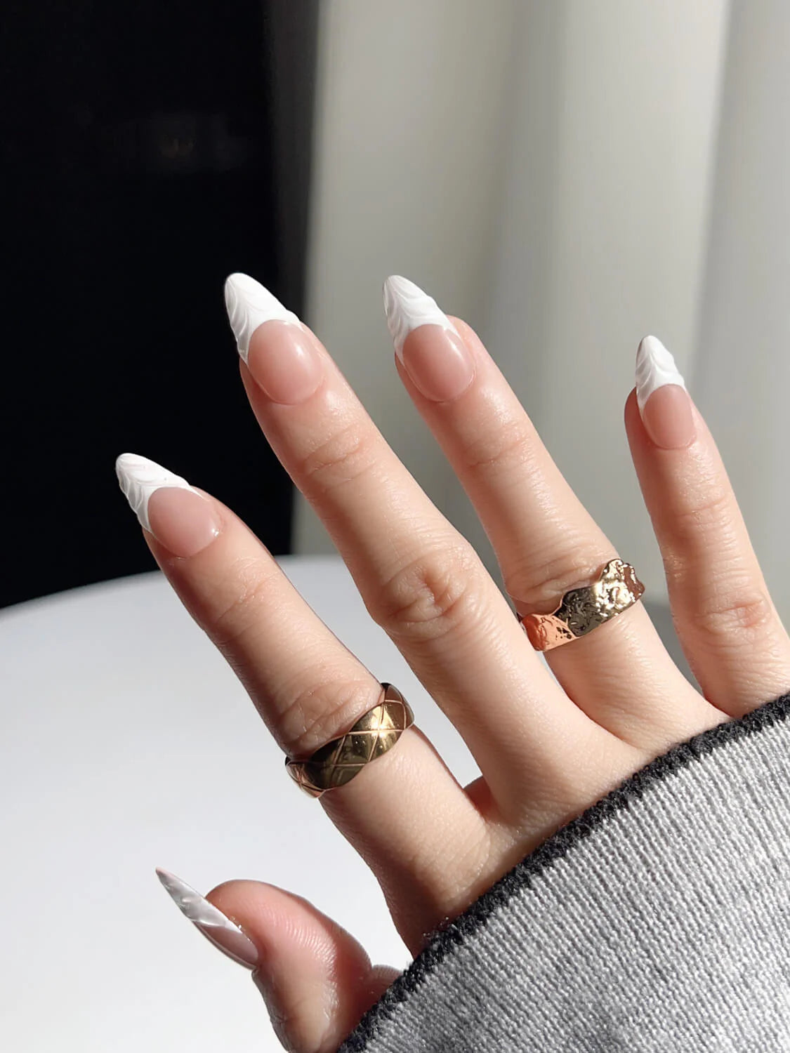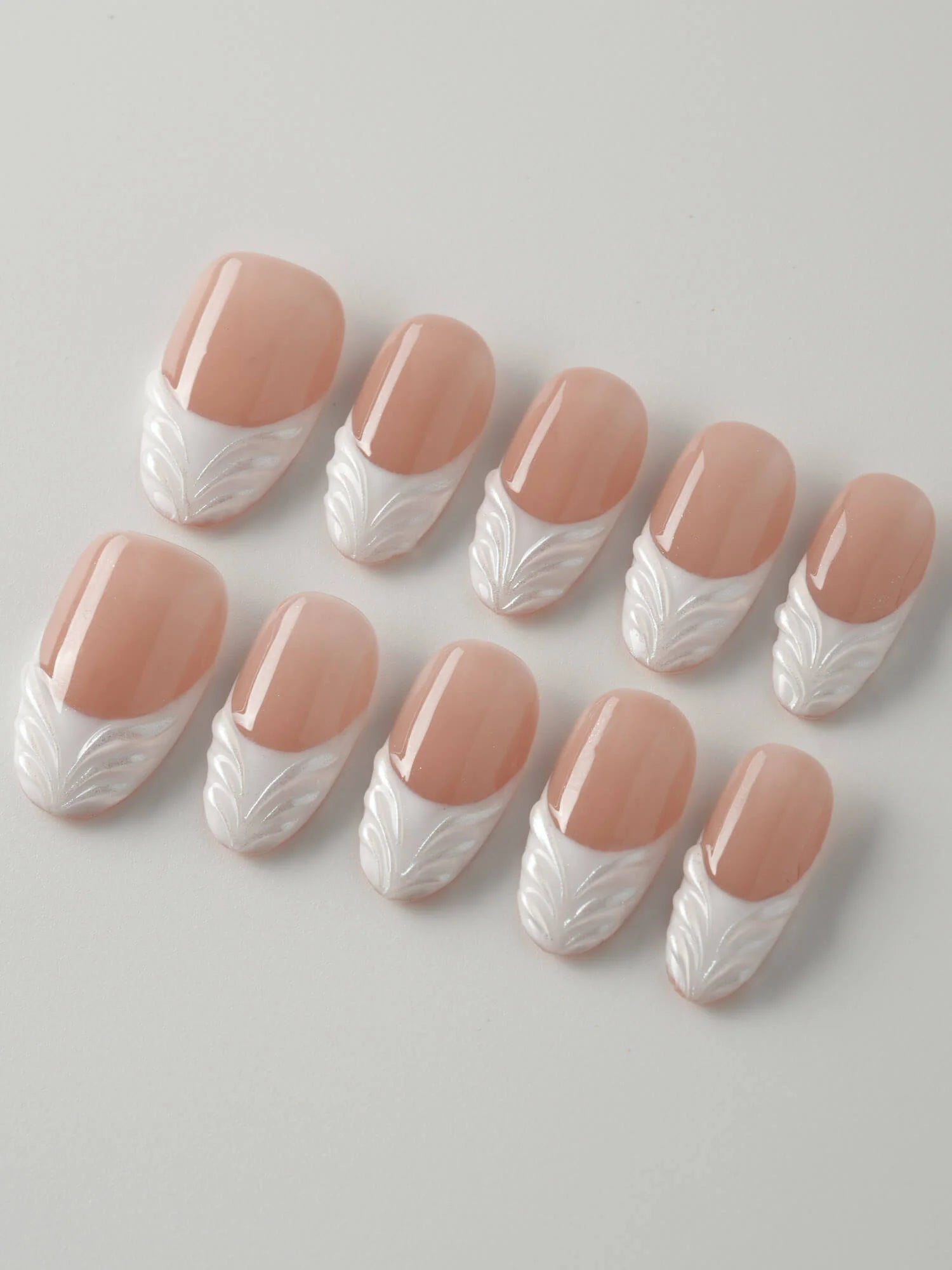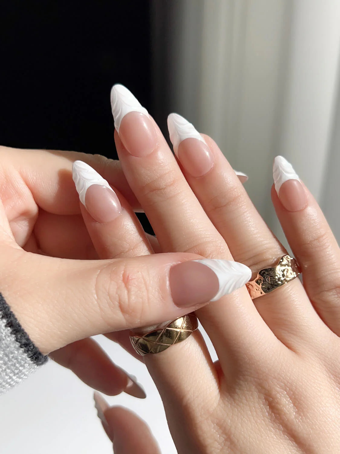 Reinvent tradition with "3D Classic French". The timeless elegance of French tips, enhanced with transparent sculpted gel, adds a modern twist to a classic look.